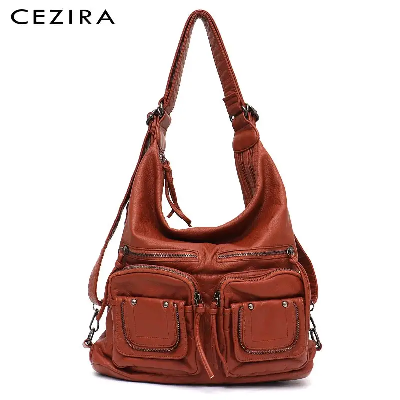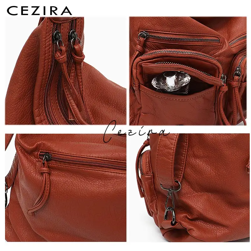 CEZIRA большие мягкие повседневные женские сумки функциональный школьный рюкзак для девочек сумка из искусственной кожи женская сумка через плечо с несколькими карманами