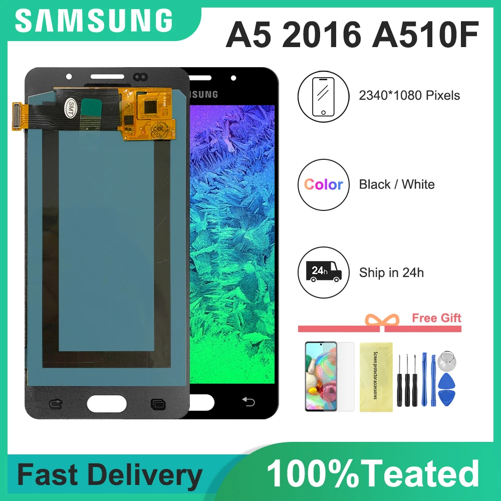 1. Оригинальный/супер AMOLED качественный ЖК-экран в сборе для Samsung GalaxyA5 2016 A510 A510F A510M LCD