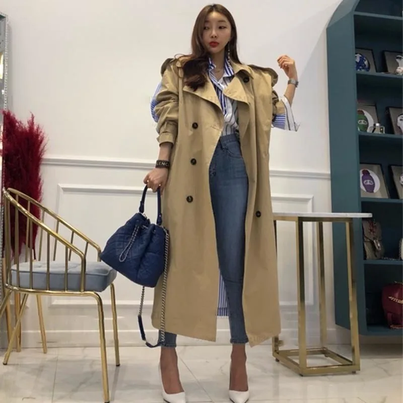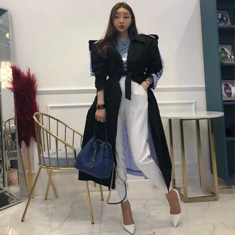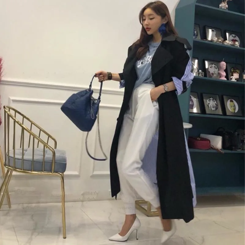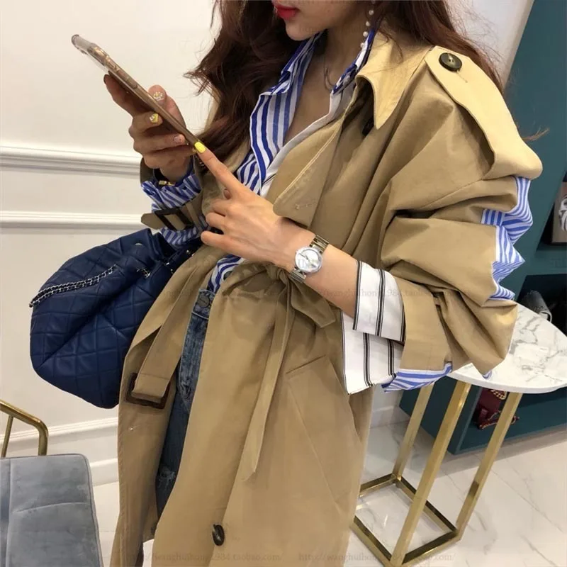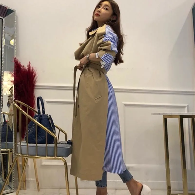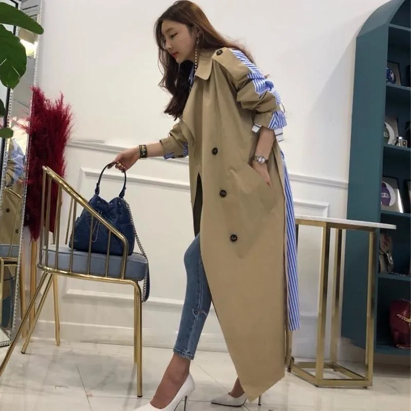Плащ женский в полоску, с длинным рукавом, оверсайз, осень 2020