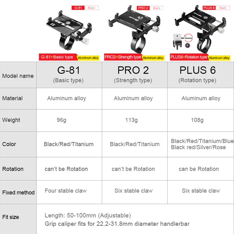 Название: держатель для телефона GUBМатериал: алюминиевый сплавРазмер: 55 ~ 100 ммВес нетто: G81 около 71 г; Плюс 6 около 108 г; Pro 2 около 110 гПрименение: 3,5-7,2 дюймов телефонные звонки.Введение: простая и быстрая установка перед рулем, вы можете наслаждаться музыкой во время езды, навигация может направлять вас, поддержка установки телефона, стабильная, четыре коготь застежка более легко зафиксировать мобильный телефон и обновить противоугонные винты, использовать более безопасно.