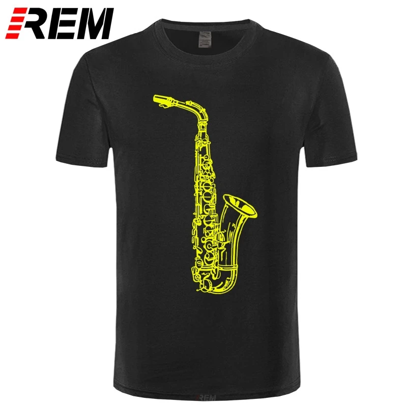 Рем новинка футболка мужская с коротким рукавом золото Футболка с изображением саксофона пользовательская джазовая музыка мужская одежда размера плюс