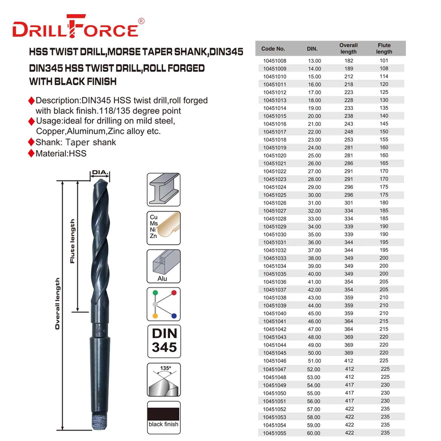1 шт. 13 мм-60 мм спиральное сверло из быстрорежущей стали с коническим хвостовиком (1314151617181920212223242527303132333540414245505560 мм)