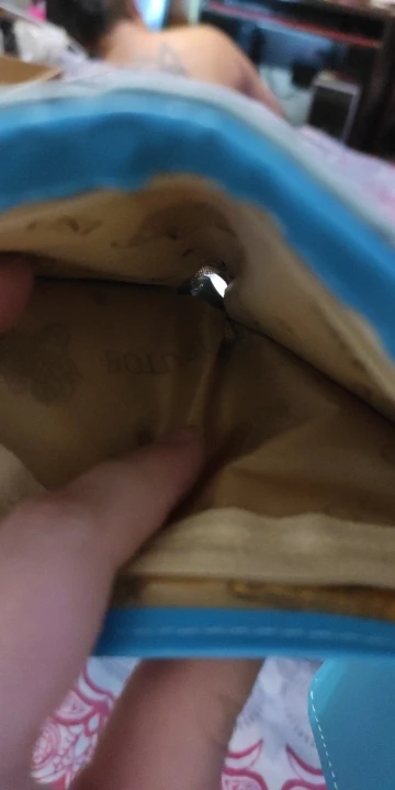 Небольшой брак в рисунке. Мелочь в него не положить, отделение на молнии внизу не прошито на сгибах.