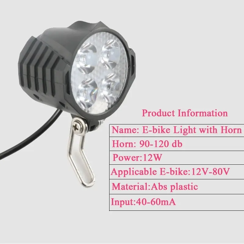 Фонасветильник велосипедный, водонепроницаемый, с рожком, 12 В, 24 В, 36 В, 48 В, 60 в, 72 в