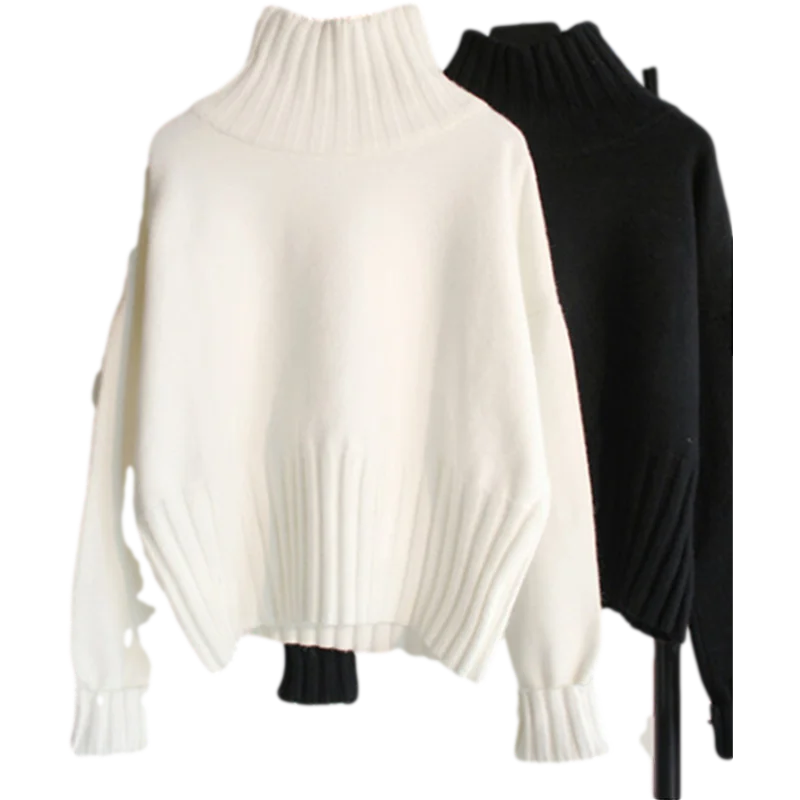 Женский свободный свитер с высоким воротом, новинка 2018, осенне-зимние черные топы, женские вязаные пуловеры с длинным рукавом, джемпер, одежда для женщин