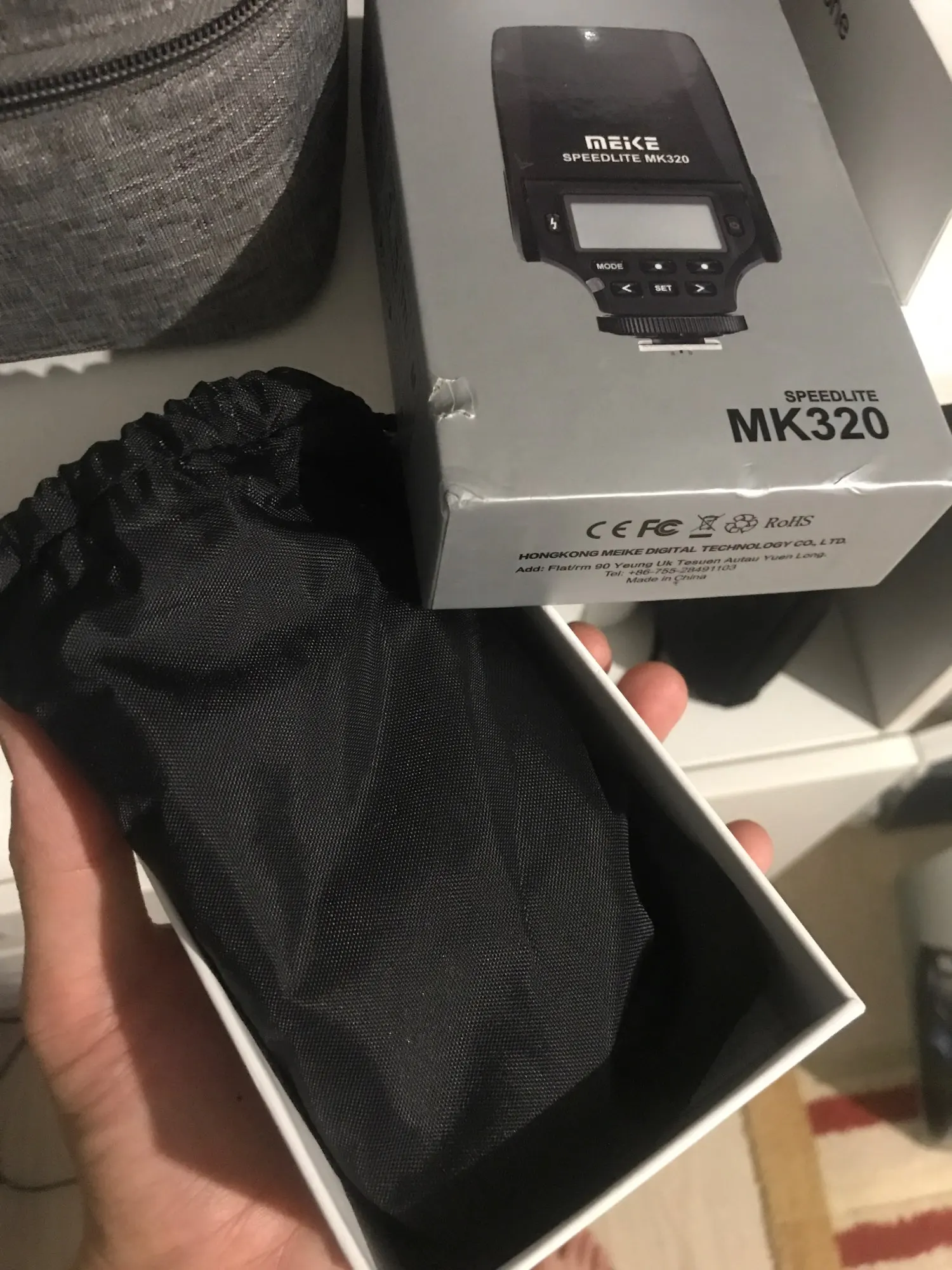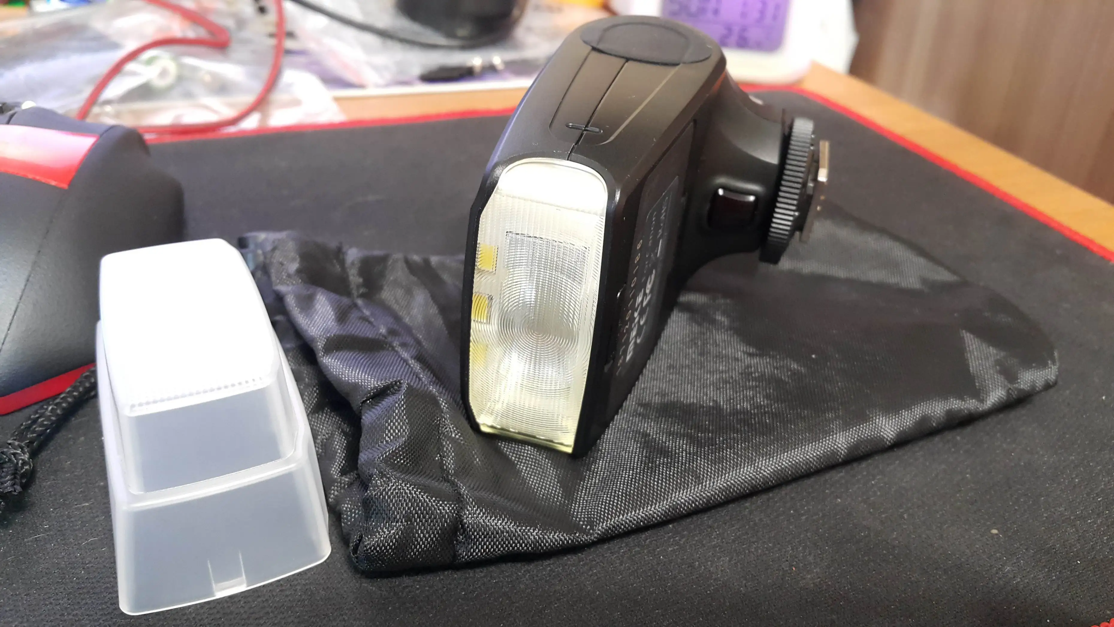 Лёгкая вспышка для дальних поездок, когда "полноразмерная" вспышка становится излишне габаритной и тяжёлой. Доставка оказалась относительно долгой - более полутора месяцев до Москвы.