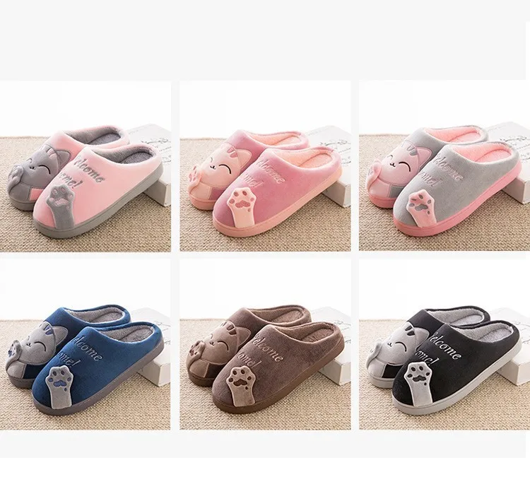 Нескользящие мягкие зимние теплые домашние тапочки; Женские зимние домашние тапочки; Обувь с рисунком кота; Домашние тапочки для влюбленных пар