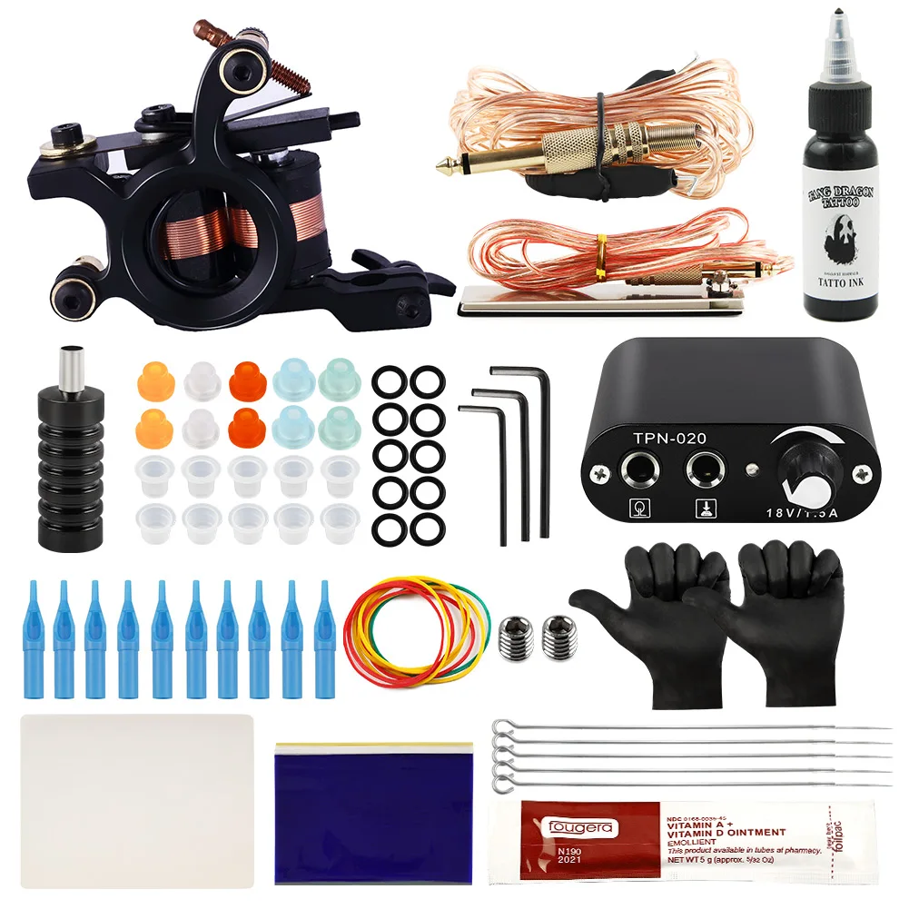 Полный набор для татуировок, машинка, аксессуары для татуировок, набор для перманентного макияжа, инструменты для боди-арта, черные чернила для начинающих
