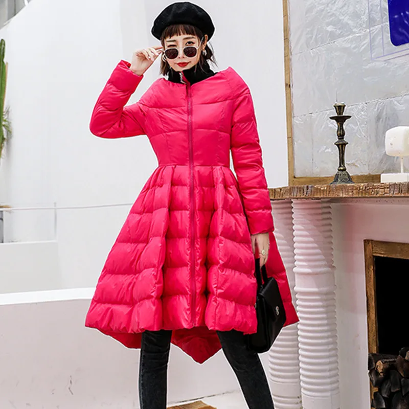 Новая зимняя стильная пуховая куртка UHYTGF с юбкой, пальто, Женский однослойный воротник, тонкий пушистый хлопковый роскошный длинный плащ, теплая куртка 983