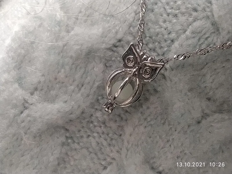 у меня был однажды такой кулон, подарок от мамы, но по несчастному стечению обстоятельств он упал и стеклянная бусинка внутри него разбилась. недавно вспомнила о нем и решила найти похожий на алике. повезло найти точно такой же. :3 в Киев доставили за 3 недели вместе с остальными товарами из других магазинов. приехал с браком. в целом, за такие деньги норм. в темноте светится.~
