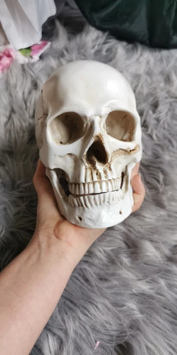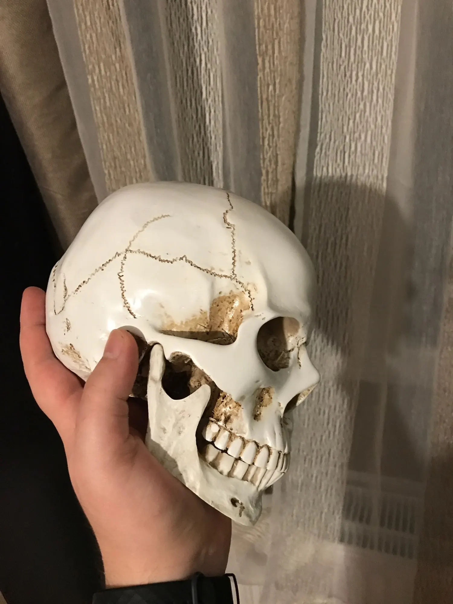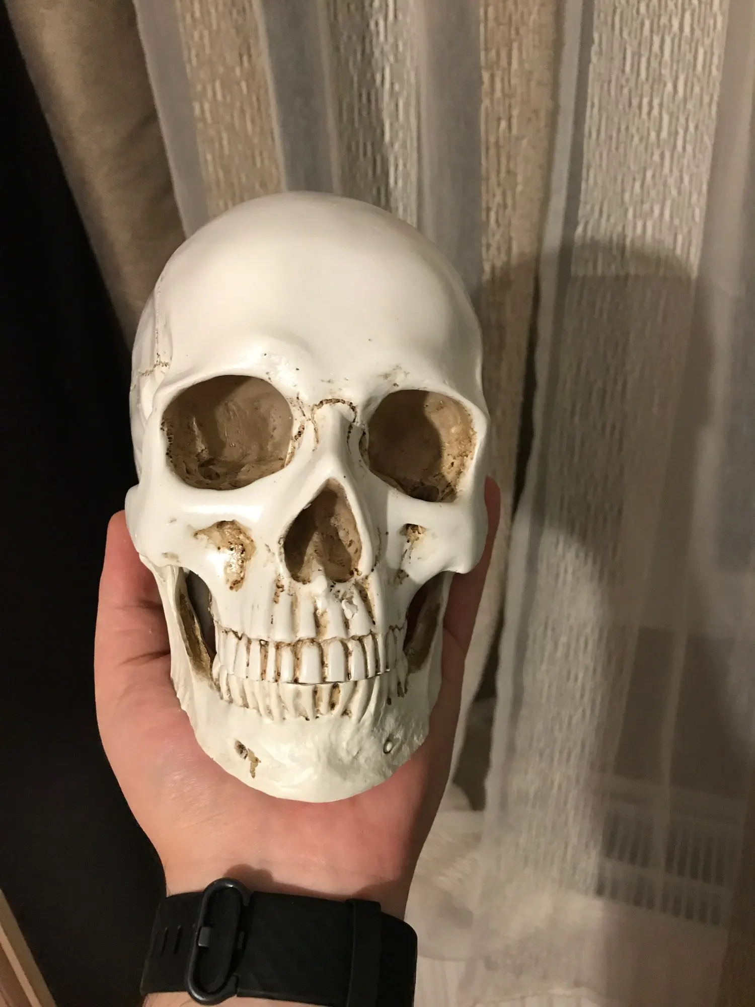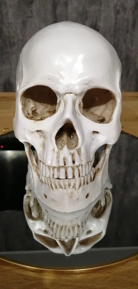 Я получил этот череп чуть менее одного месяца. Череп сам по себе выглядит реалистично и корректно. Я поставлю его в свой книжный шкаф, где он отлично выглядит со множеством старых книг, которые у меня есть. Я доволен этим, спасибо продавцу!