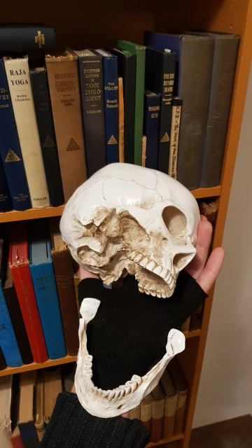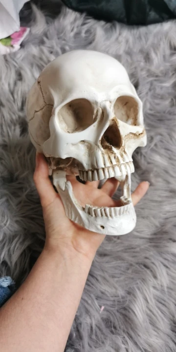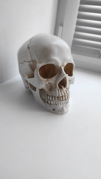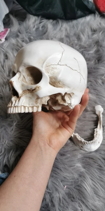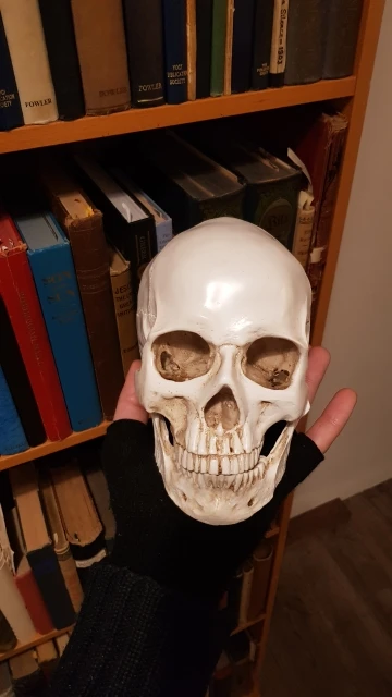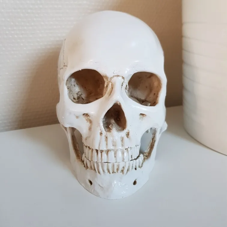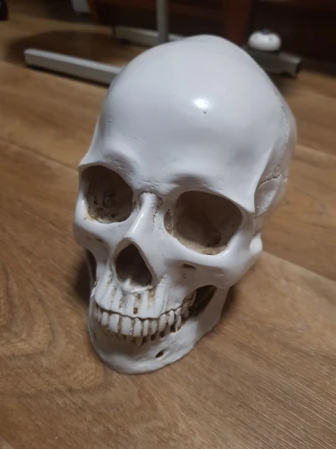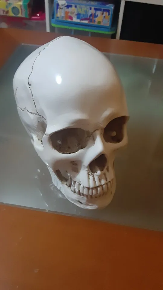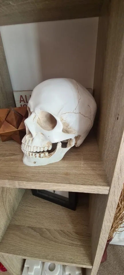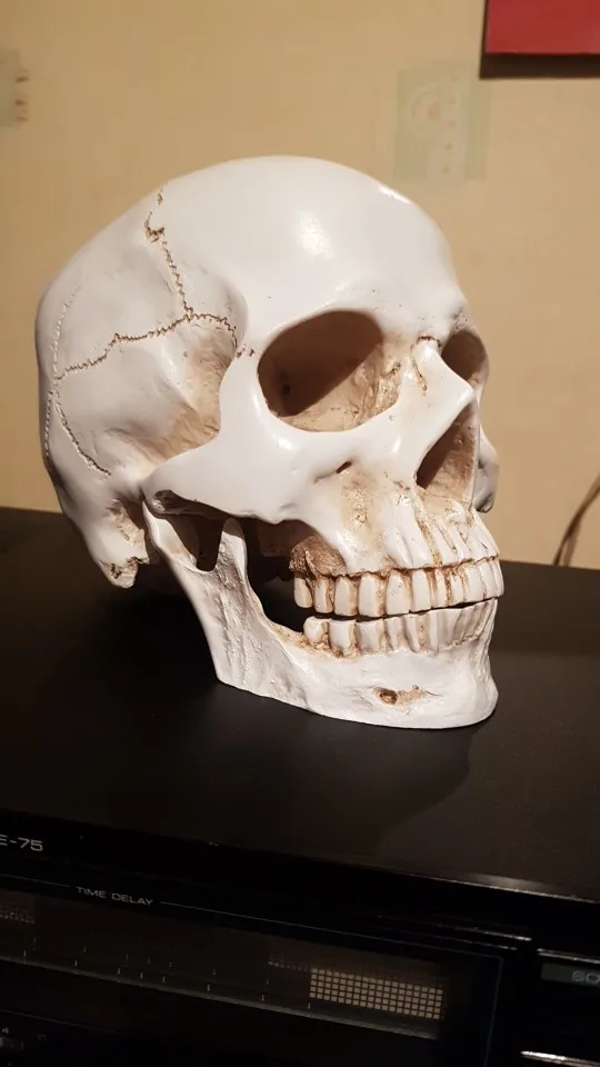 Я получил этот череп чуть менее одного месяца. Череп сам по себе выглядит реалистично и корректно. Я поставлю его в свой книжный шкаф, где он отлично выглядит со множеством старых книг, которые у меня есть. Я доволен этим, спасибо продавцу!