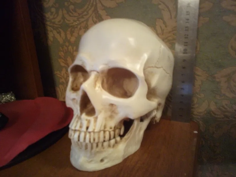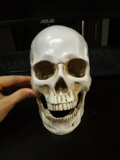 Череп хороший, соответствует пропорциям черепа человека. Есть один минус - череп очень хрупкий, упала нижняя челюсть со стола и раскололась, пришлось клеить. Впринципе Я доволен и могу порекомендовать остальным.