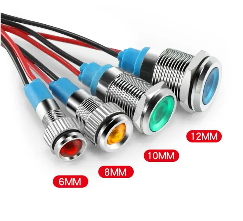 6 мм 12 В мини металлическая Светодиодная панель индикатор сигнала приборной панели сигнасветильник кабель 15 см хромированная отделка автомобиль лодка морской