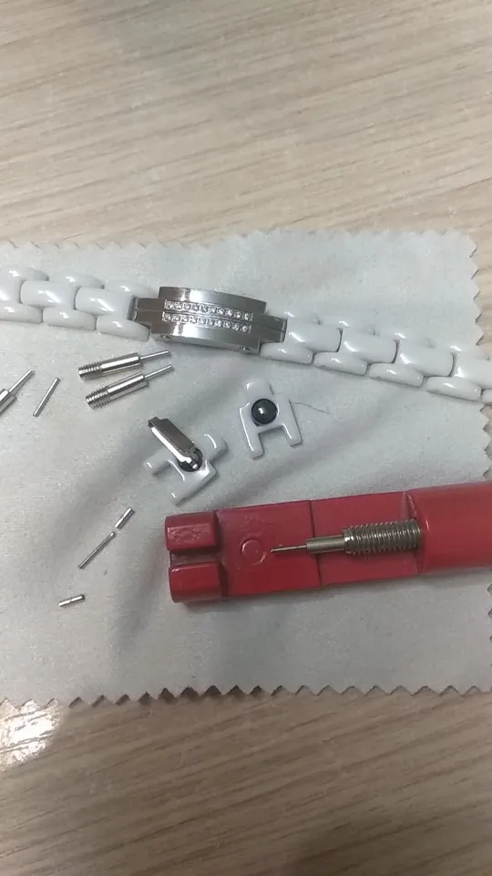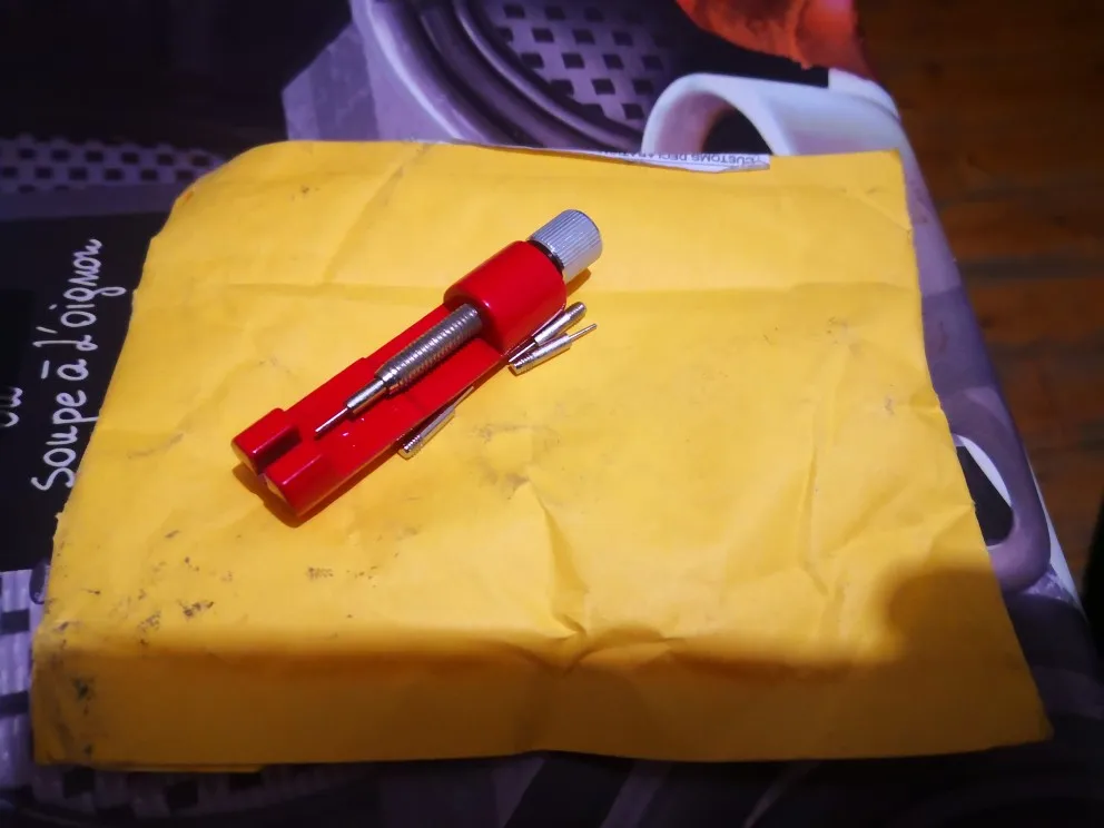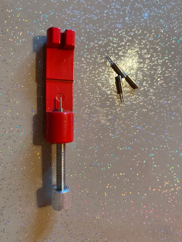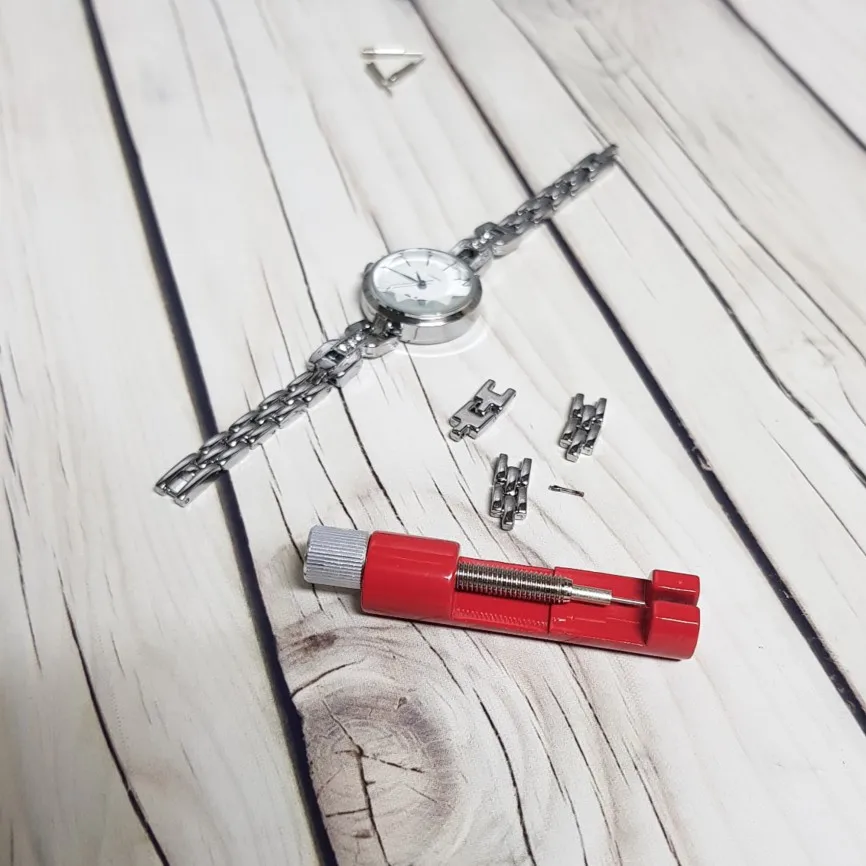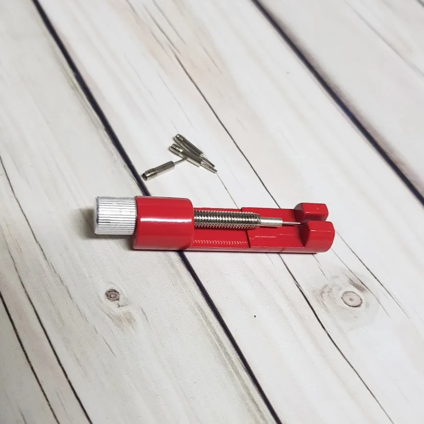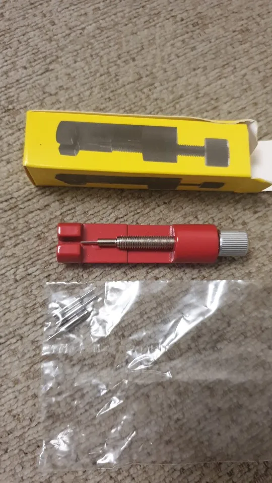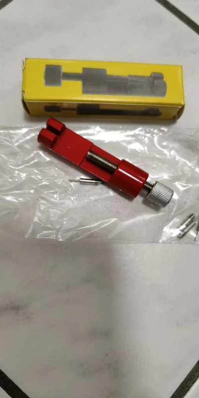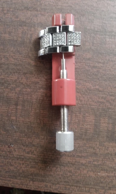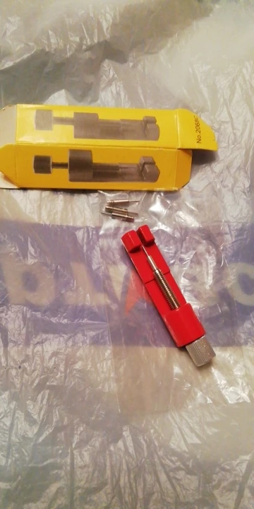 очень удобный инструмент для укорачивания браслетов, но надо иметь ввиду, что ось звена браслета можно выдавить только в одну сторону, устройство оси я указал на фото, продавцу большое спасибо, рекомендую.