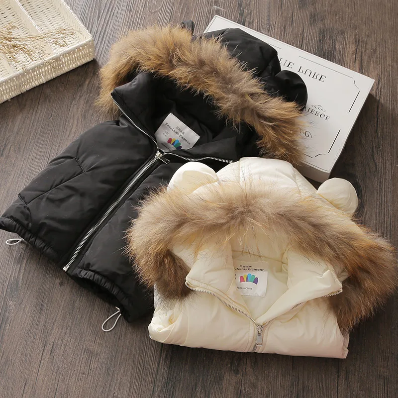 Верхняя одежда и пальто для девочек 2021 г. Зимняя От 2 до 10 лет с ушками из искусственного меха однотонная утепленная бархатная жилетка с капюшоном для маленьких девочек
