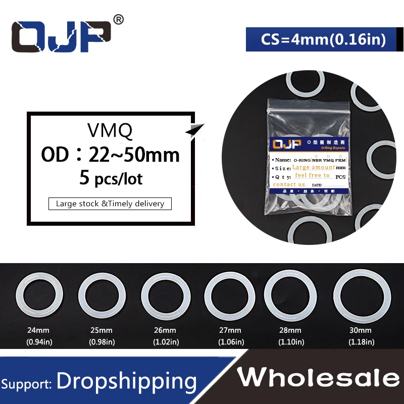 5 шт.лот силиконовые кольца силиконовыеVMQ уплотнительное кольцо 4 мм толщина OD222628303235384042454850 мм резиновое уплотнительное кольцо уплотнительные прокладки