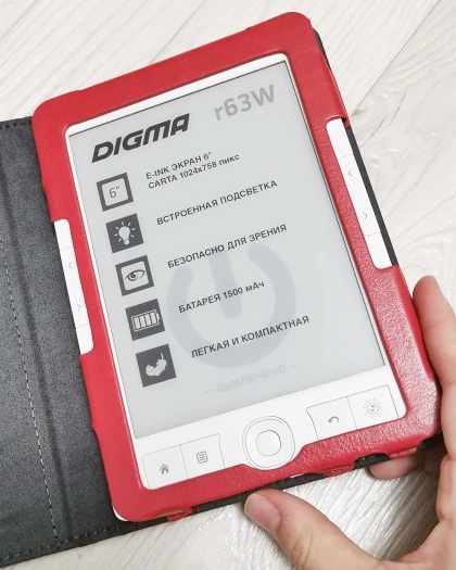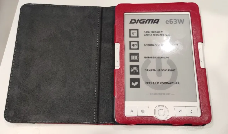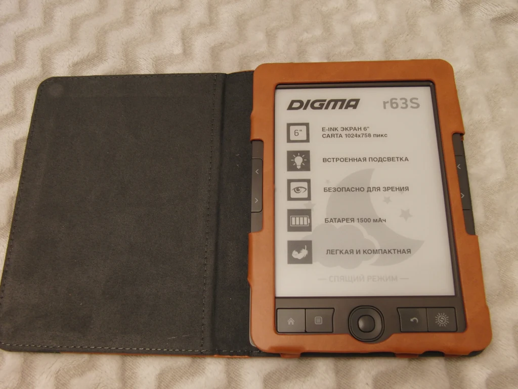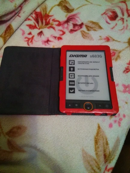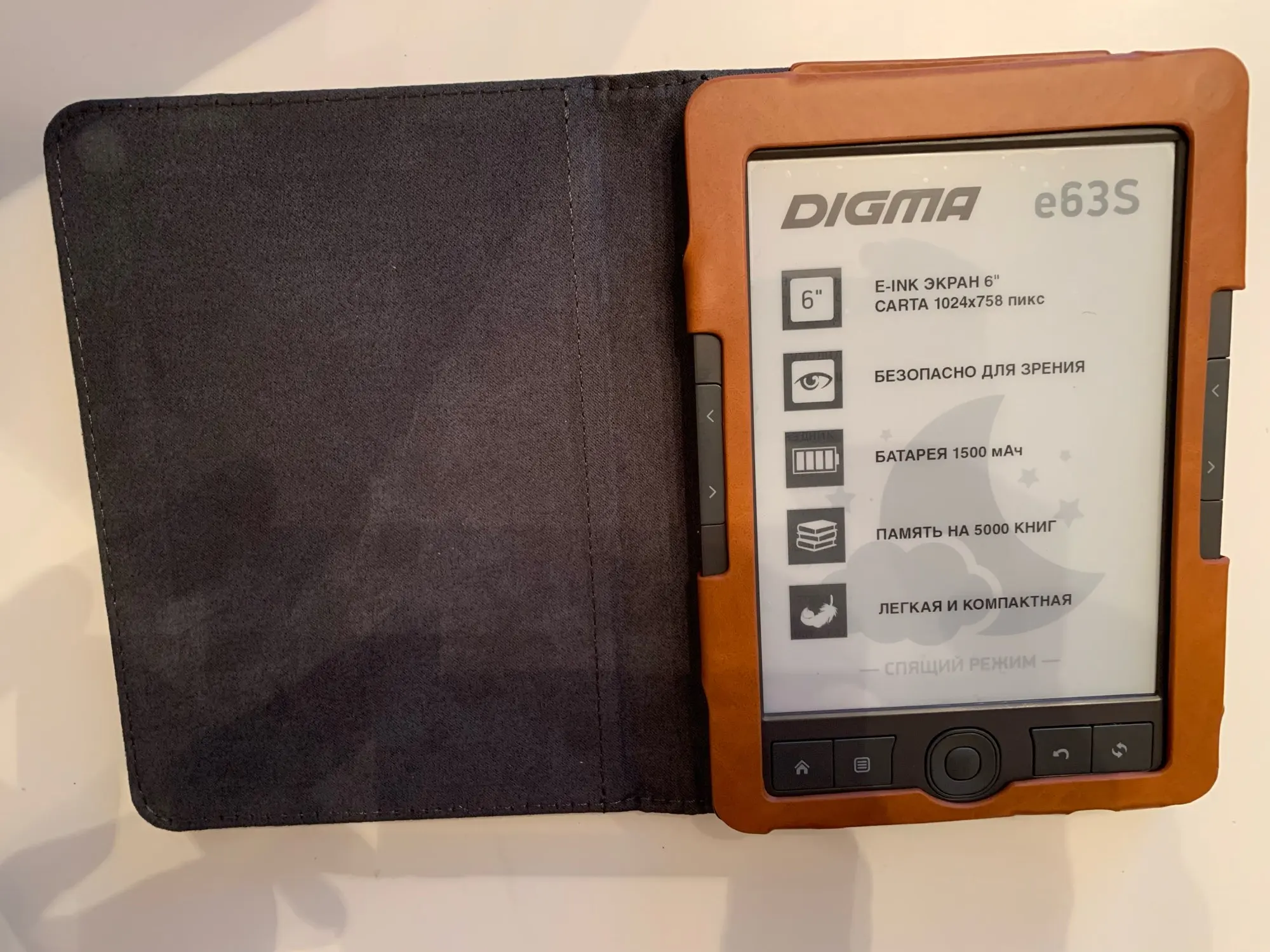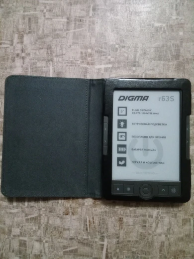 Отличная обложка, теперь можно не бояться случайно сесть на электронную книжку. У меня Digma e63s.