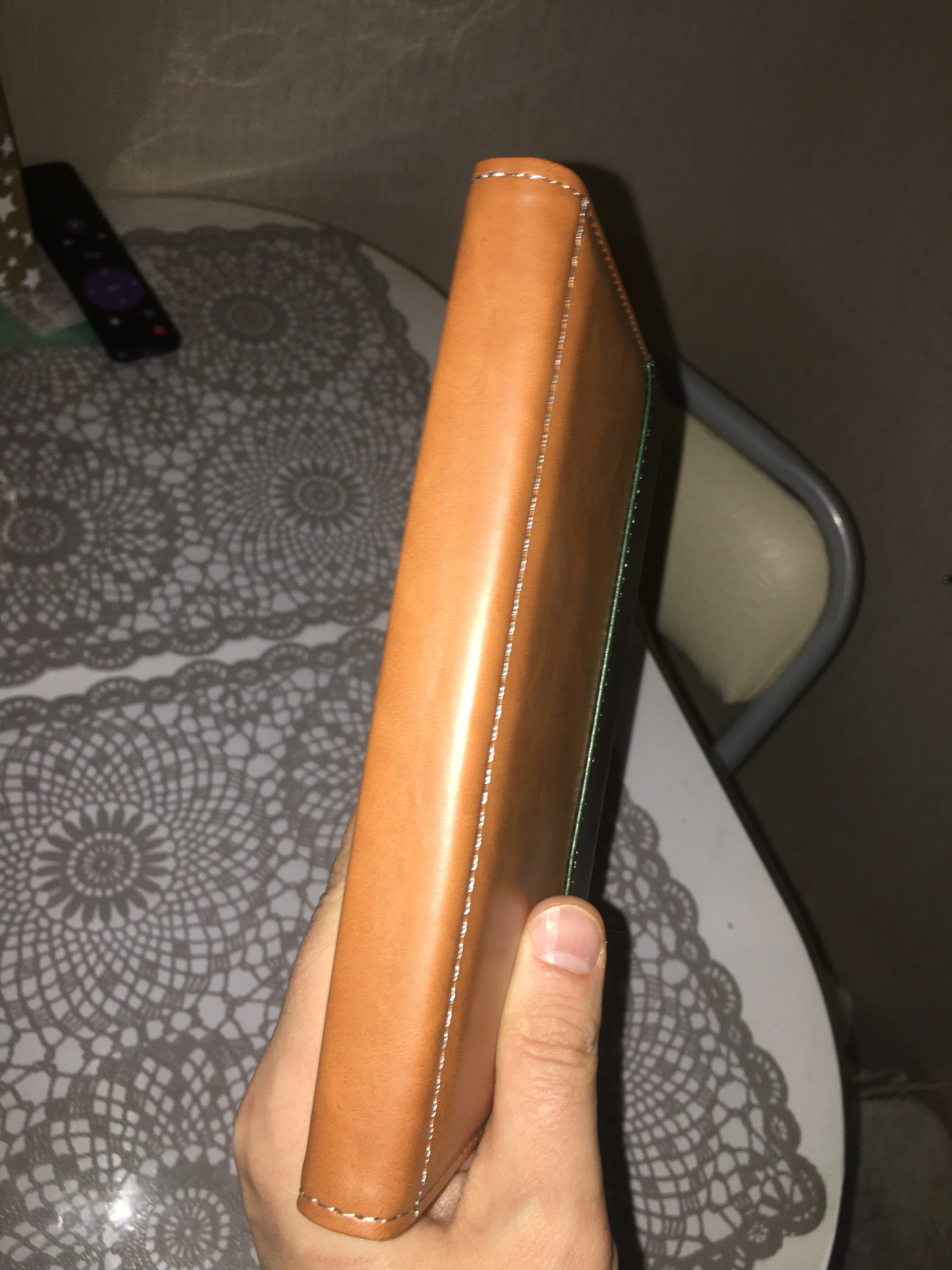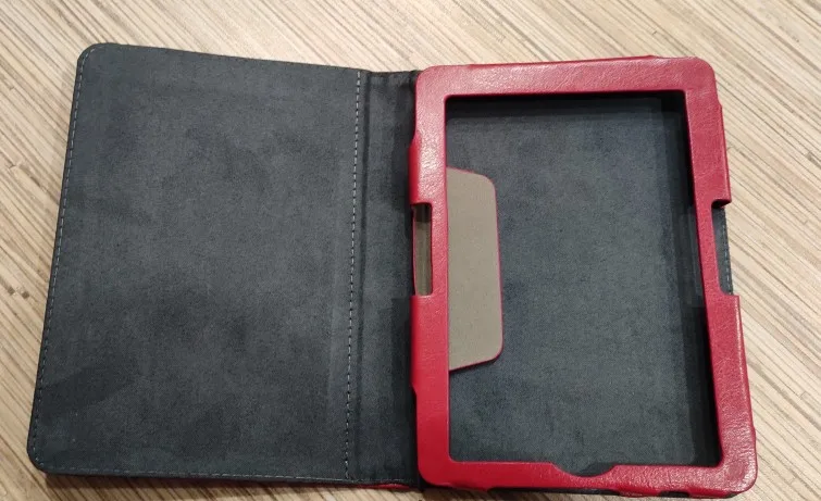 Супер быстро пришёл и так же продавец быстро отправил! Спасибо) В общем чехол добротный, хорошо прошит. Закрывается с помощью спрятанного магнита. Магнит держит крепко, чехол сам по себе не откроется. Книга сразу имеет вес. В России на эту модель чехлов не найти толком. А тут такой подарок можно сказать! Всё кнопочки на своих местах ничего не мешает. Чехол внутри "не давит" на книгу, плотно держится, так просто точно не вылетит) Ну и плюс, приятные тактильные ощущения, надеюсь прослужит долго.