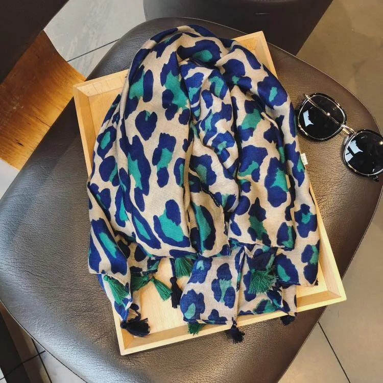 Женский леопардовый шарф с кисточками, шаль из вискозы шарф в горошек, палантин из пашмины, мусульманский хиджаб, снуд