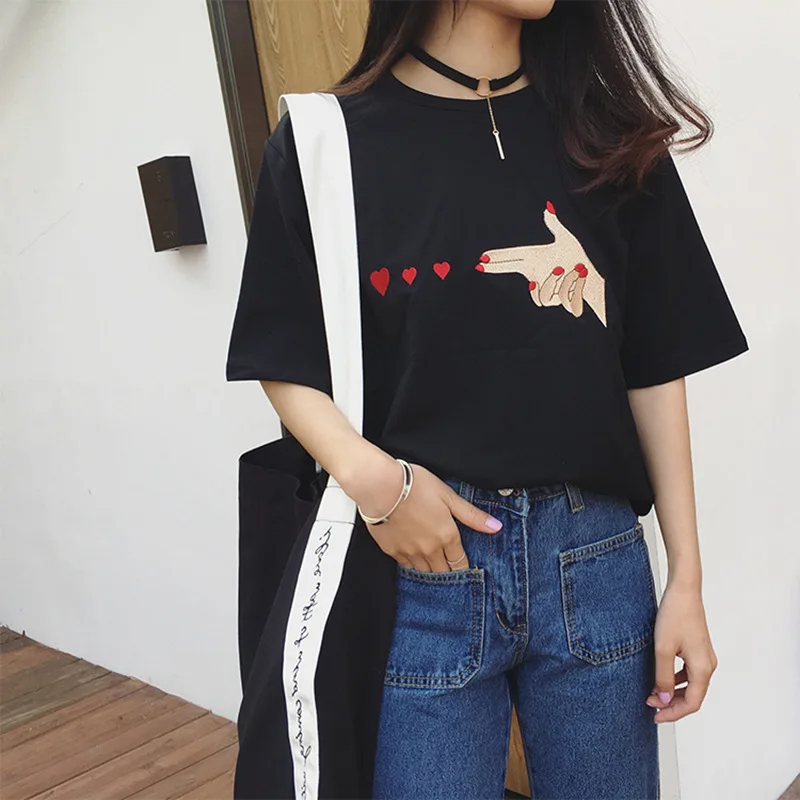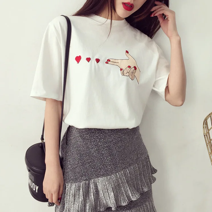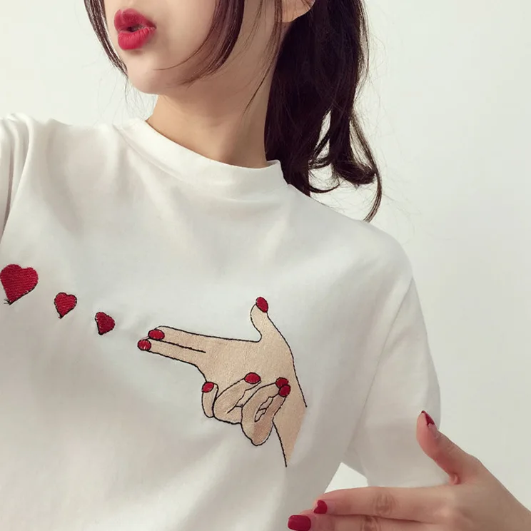 Женская летняя футболка с коротким рукавом, с принтом в виде сердца