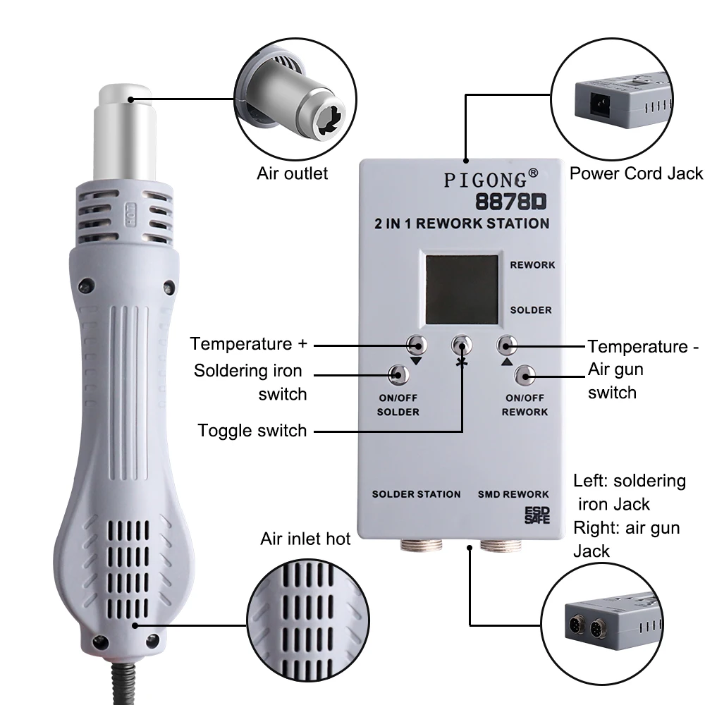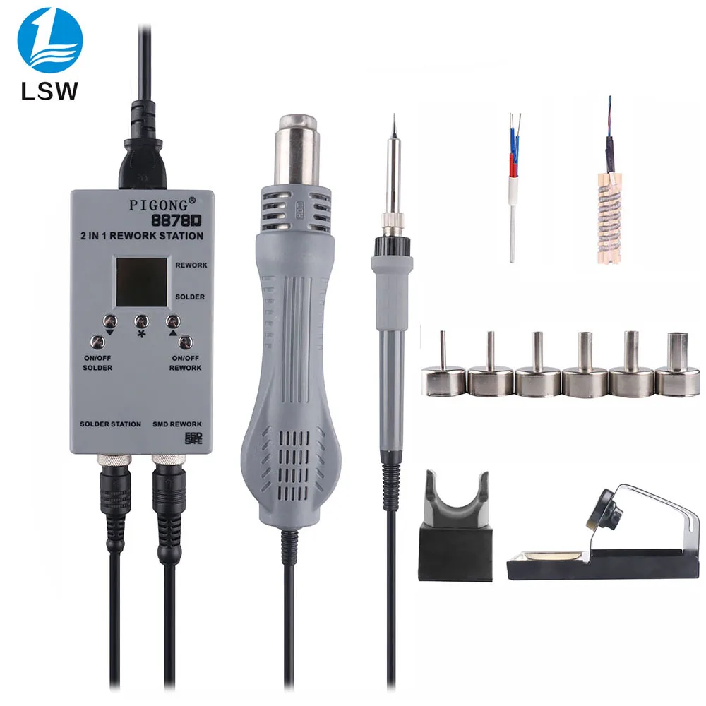 8878D цифровой двойной 2 в 1 SMD Термовоздушная станция с вентилятором для ремонта Сварка тепловой пушкой железа VS 8586