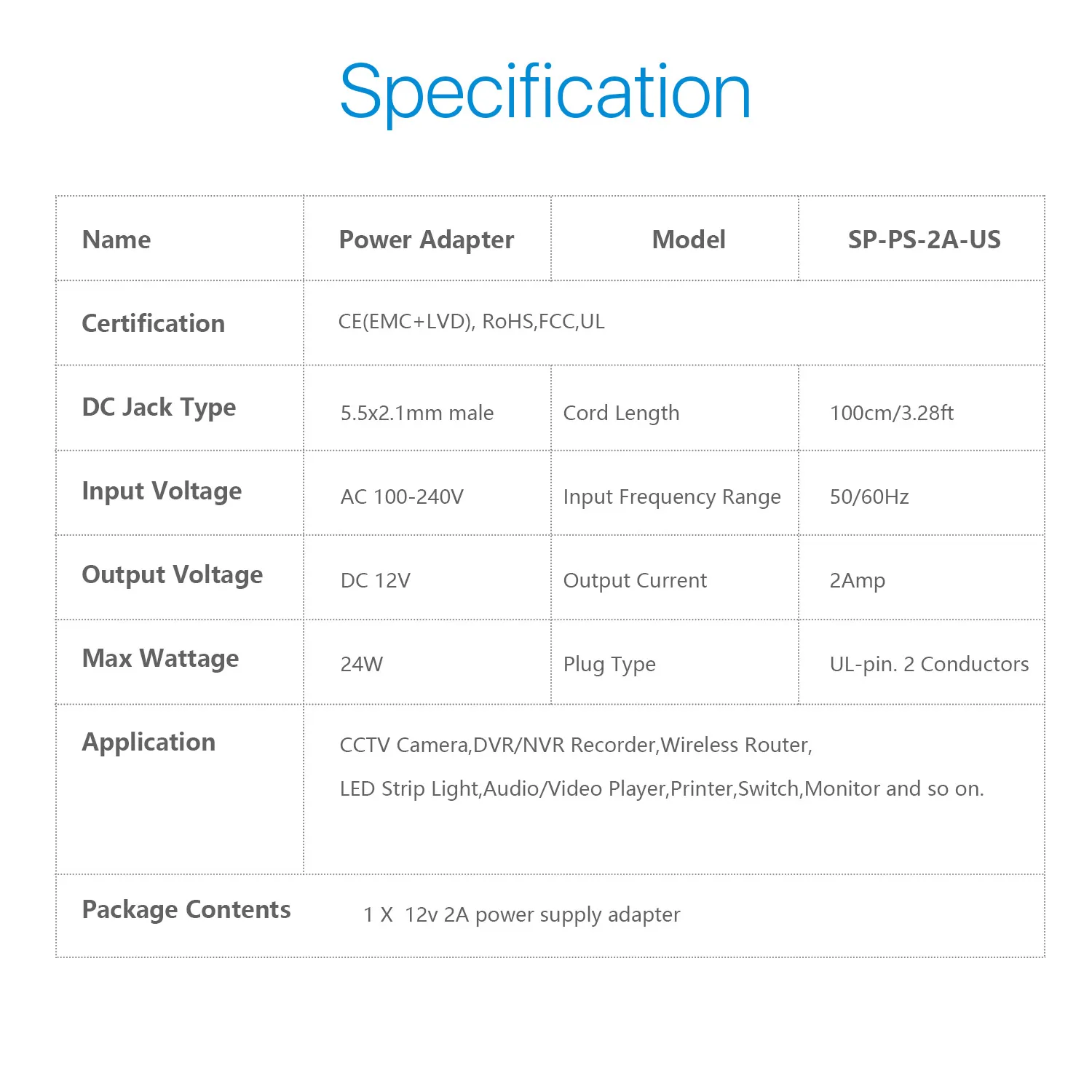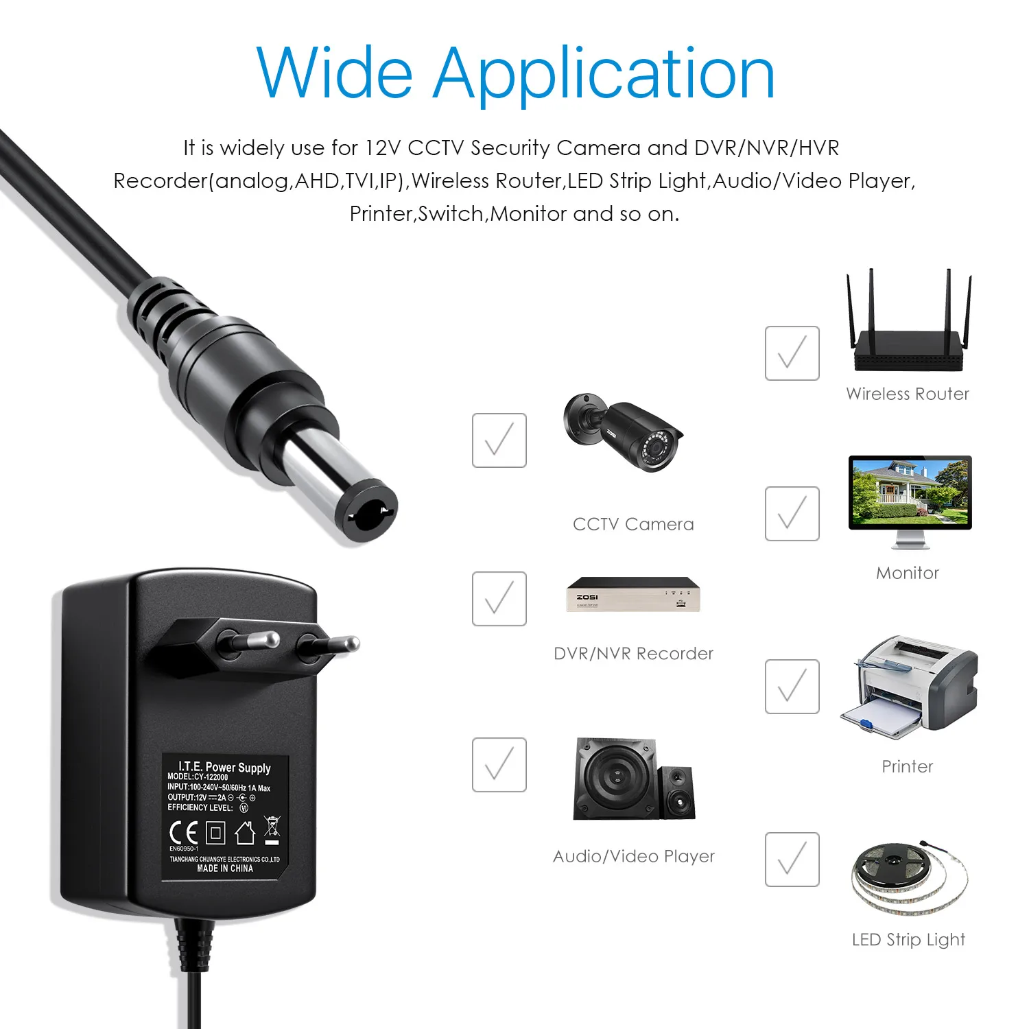 Зарядное устройство ZOSI для системы видеонаблюдения, 12 в пост. Тока, 2 А, для ЕС, США, Великобритании, Австралии