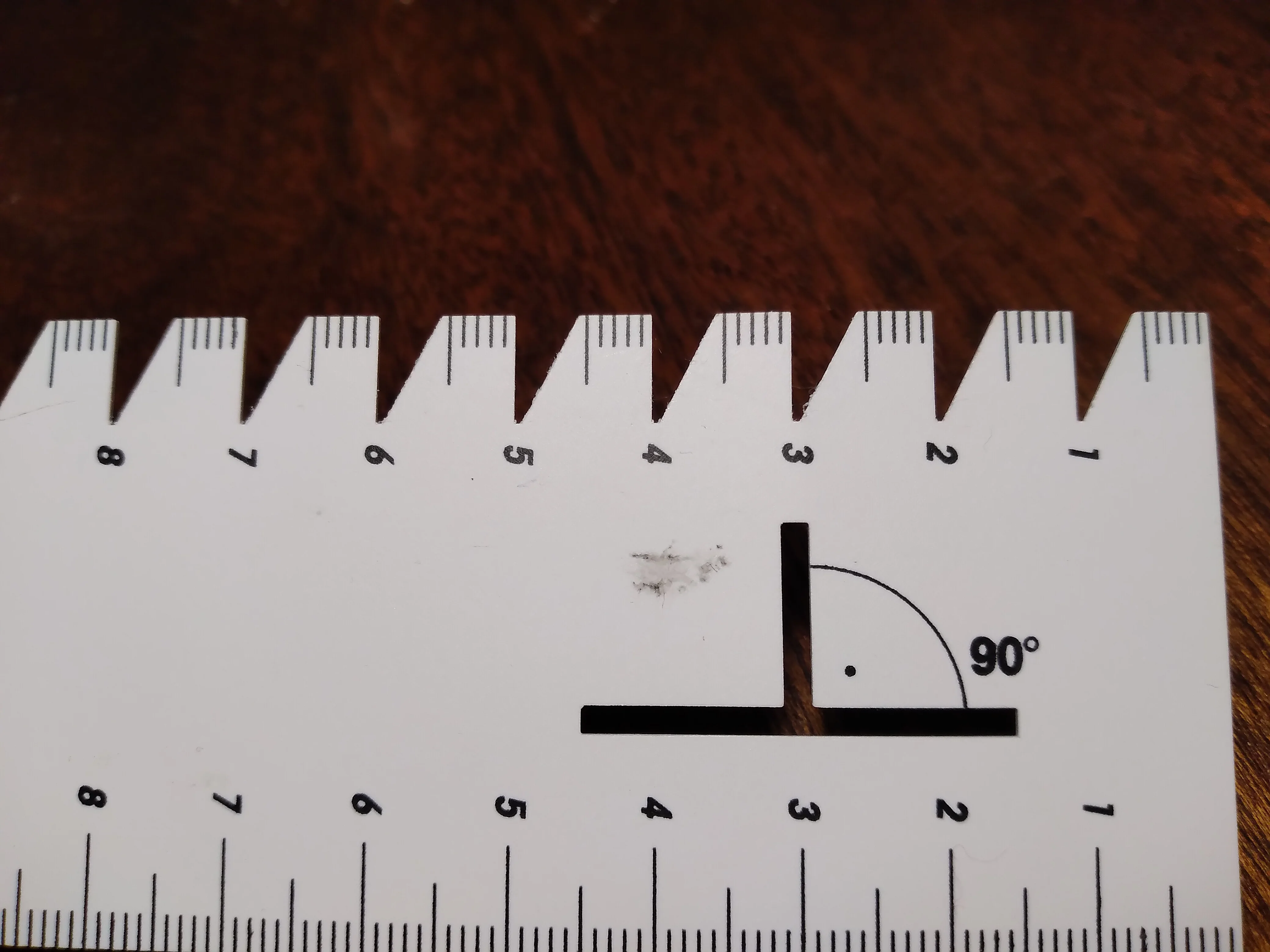 Очень тоненькая, в верхней части ламтнироварие слегка сморщилось. Ну так себе линеечка. Хотя, за 45 центов может и нормально.