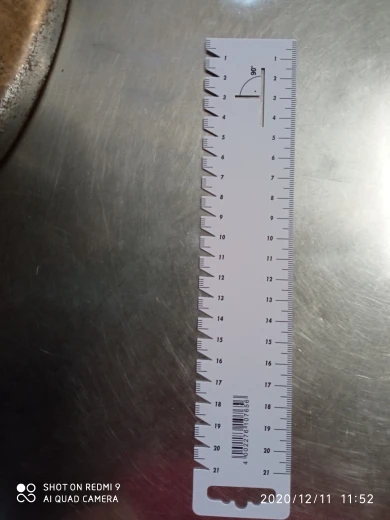 Линейка отличная, но не долговечная. Это не пластик и не металл, ламинированный картон с какой-то пропиткой. Для меня оказалась настолько удобной, что буду заказывать такие линейки и дальше. Очень удобно и точно размечать припуски и тому подобное, глазомер у меня отличный, но с линейкой всё равно удобнее и быстрее. Спасибо продавцу.