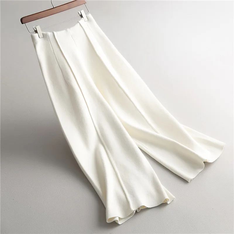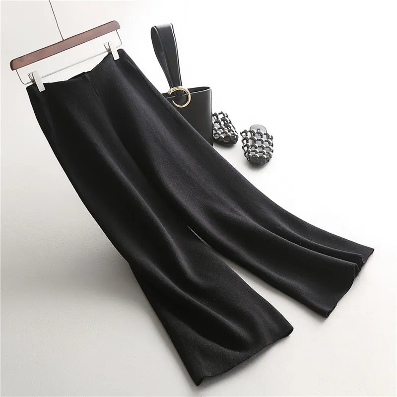 Зимние вязаные женские брюки с высокой талией, свободные широкие брюки до щиколотки, утепленные женские брюки, новинка 2020
