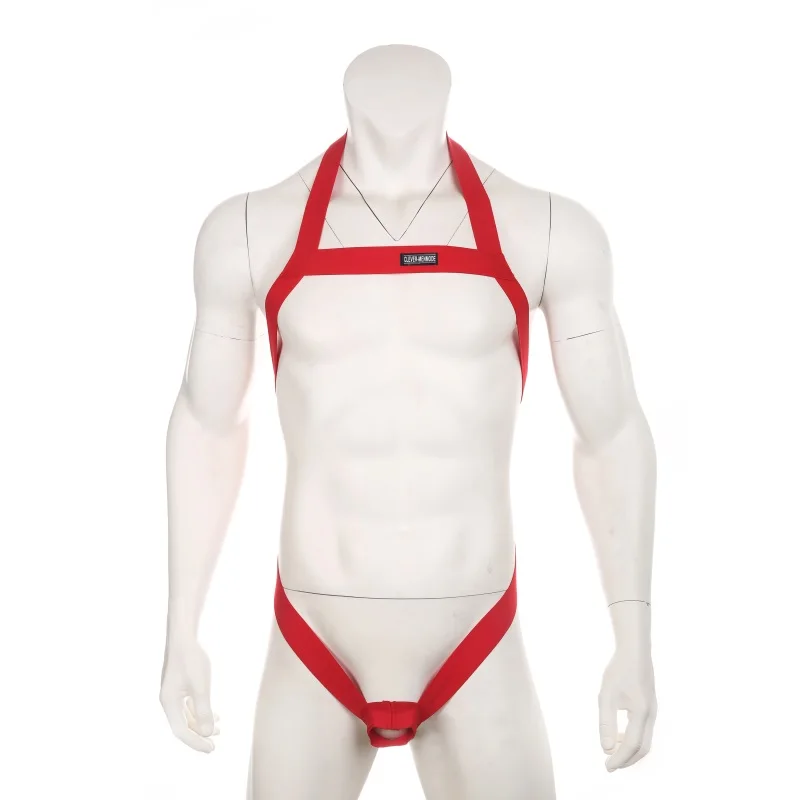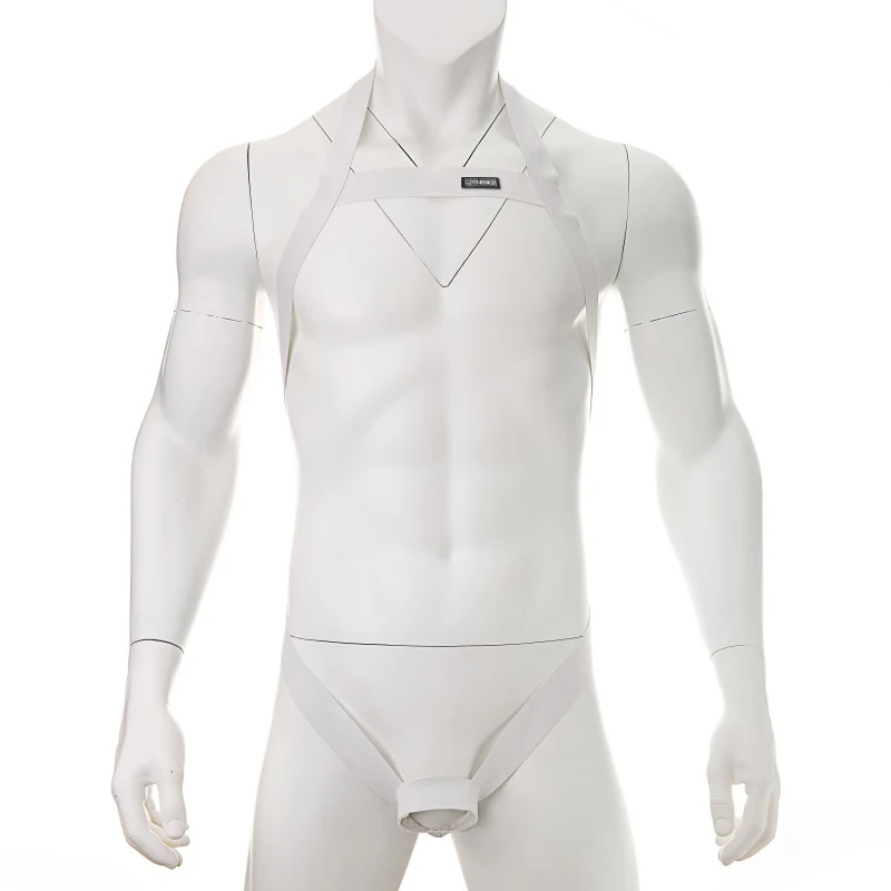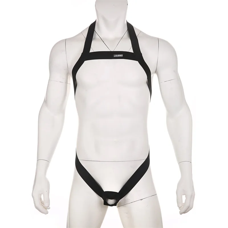 Мужской костюм с лямкой через шею, эластичный бандаж, с вырезами, с кольцом для пениса
