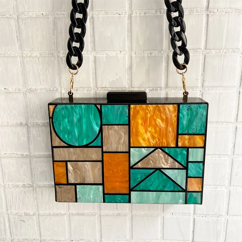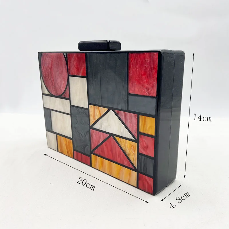Лоскутные акриловые сумочки, вечерние клатчи, сумка на плечо с геометрической цепочкой, женские вечерние кошельки, кошелек для женщин, бесплатная доставка