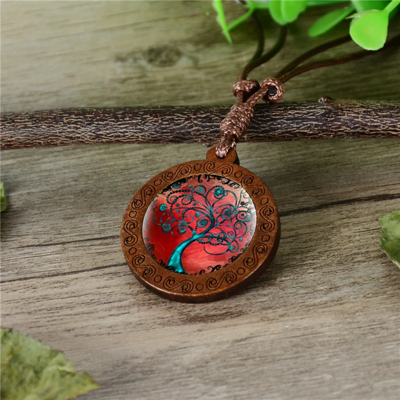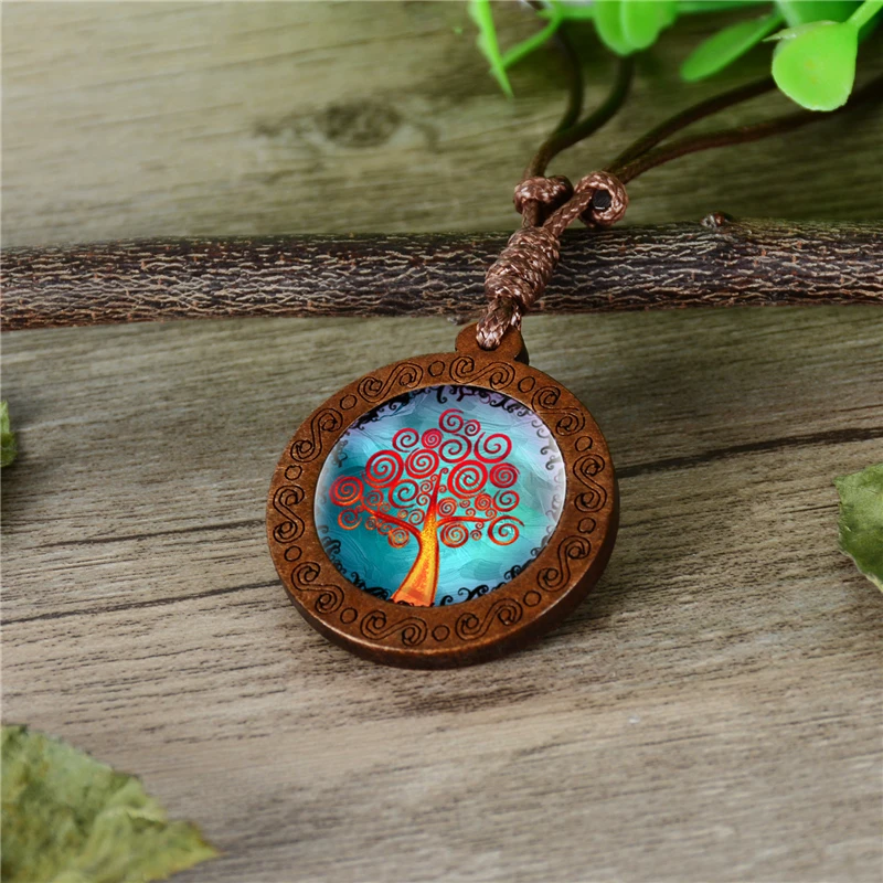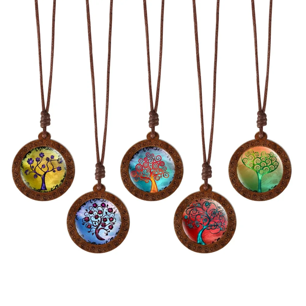 Массивное колье Древо жизни с изображением кабошона из дерева и стекла, очаровательное женское колье-чокер, подарочные украшения для женщин и девочек