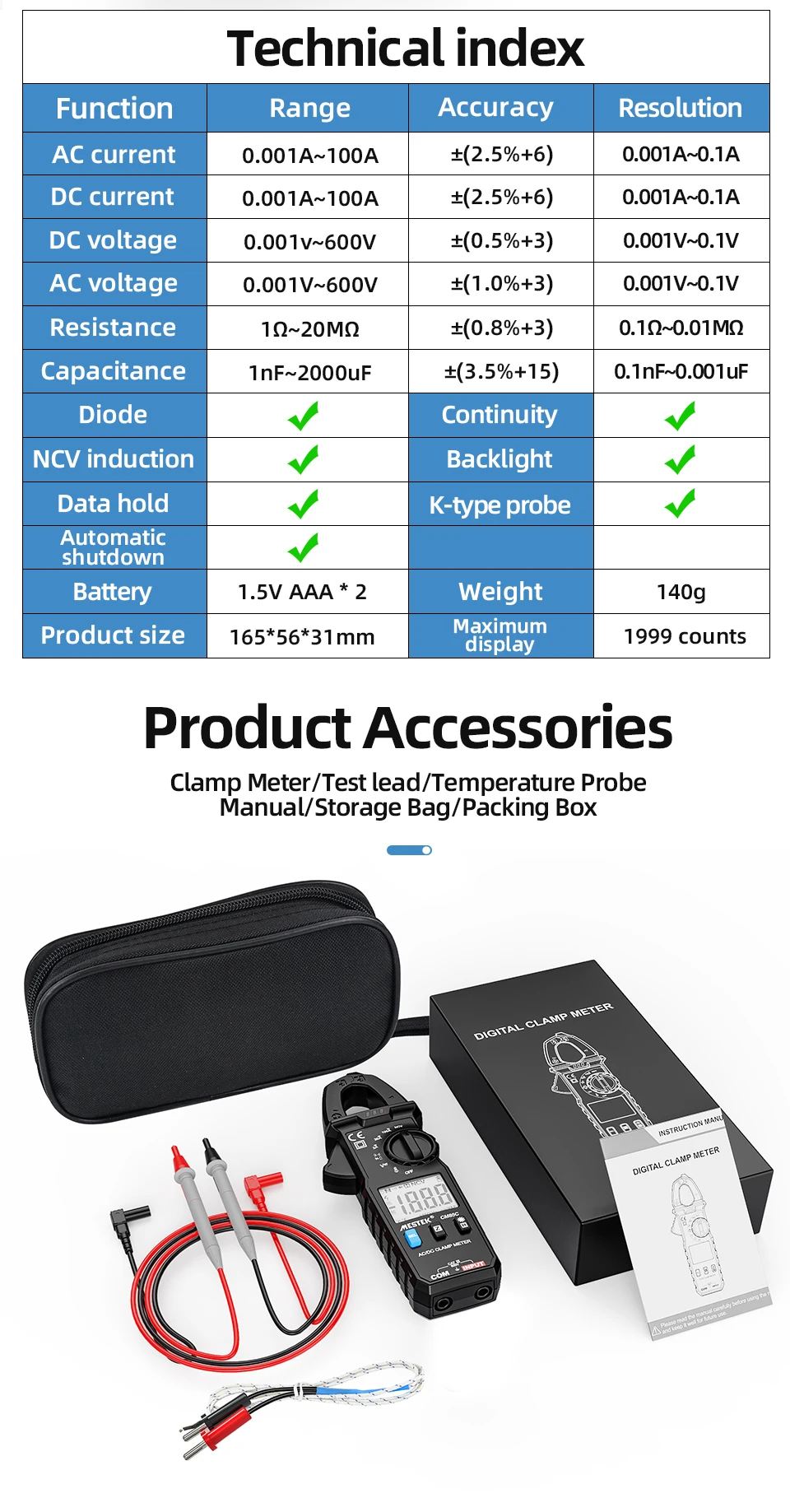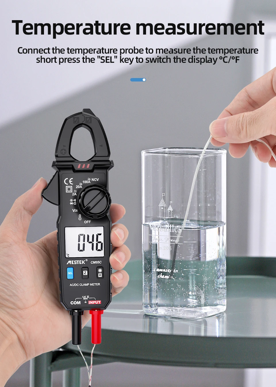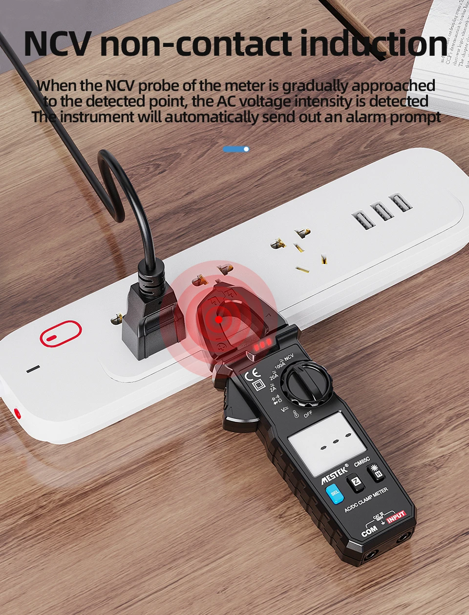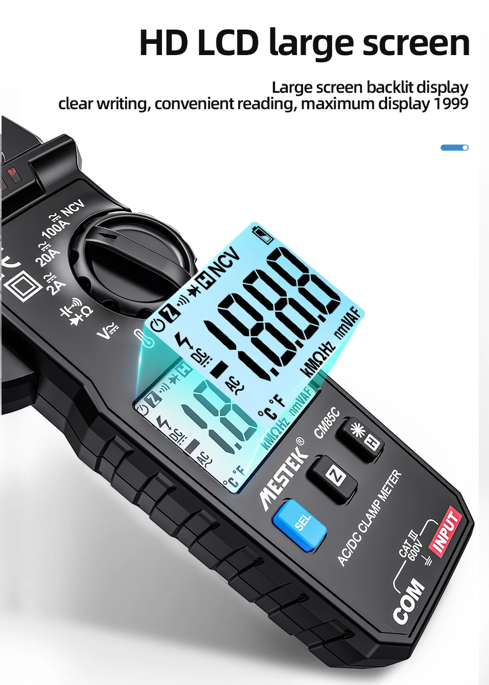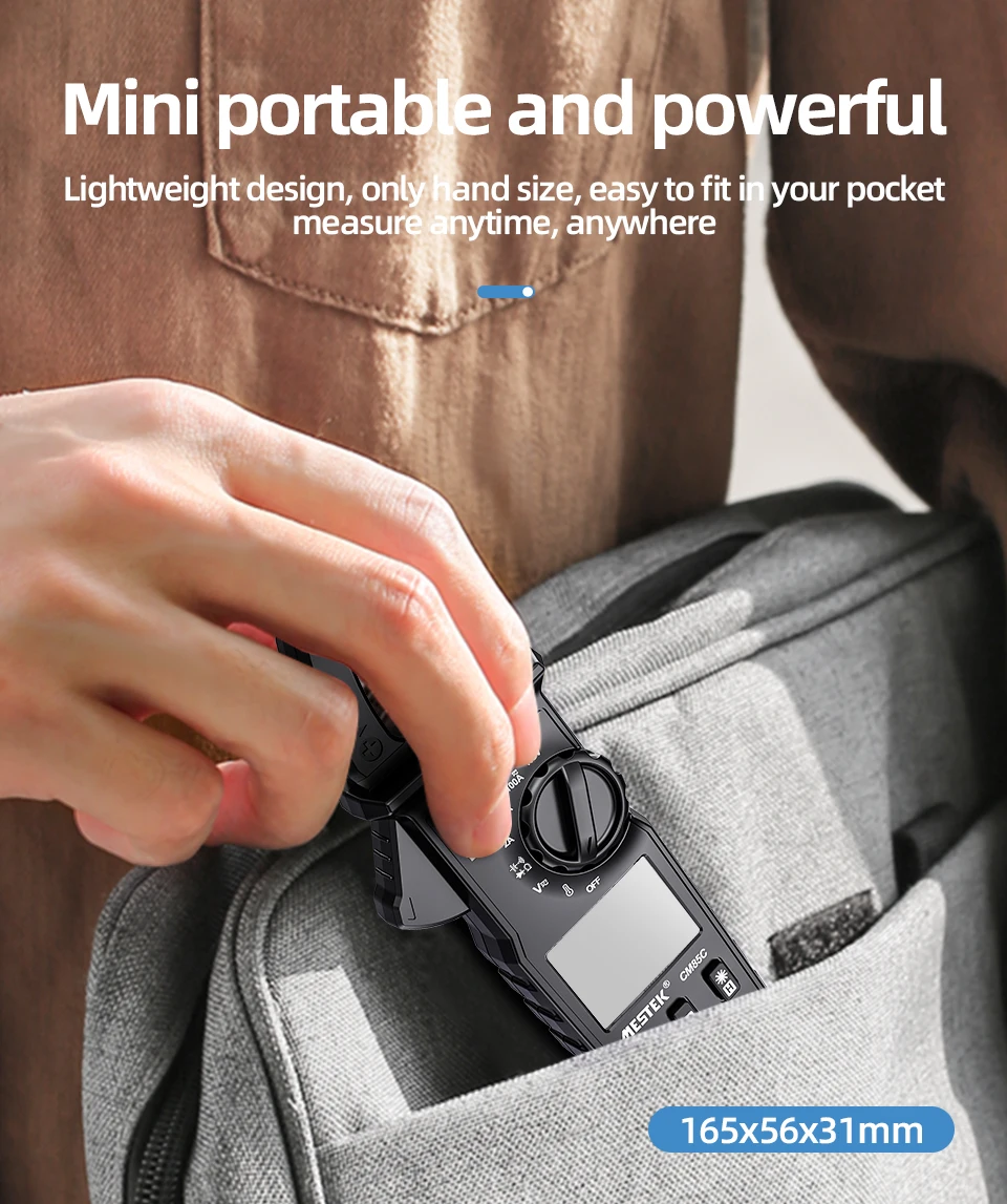 Цифровой мультиметр-зажим Mestek CM85C, вольтметр с функцией True RMS, высокая точность, емкость, Бесконтактный индикатор напряжения, Ом, Измеритель постоянного и переменного тока