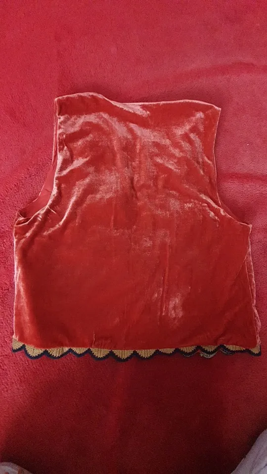 Жилет отличного качества. Маленький размер красиво подходит моей дочери. Это австралийский женский размер 8-10. Цвет ржавый красный и очень винтажный.