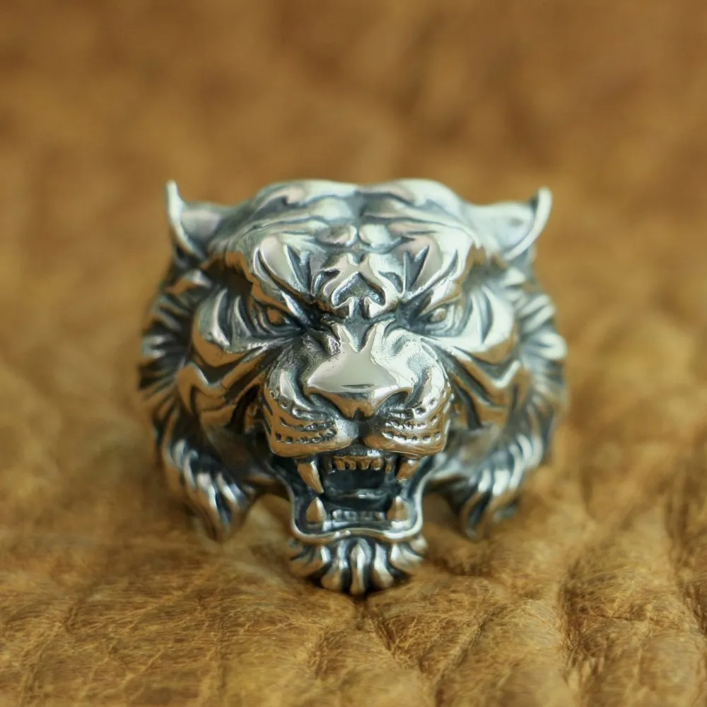 LINSION 925 пробы Серебряное кольцо с тигром, мужское кольцо в стиле панк TA130, размер США 7 15