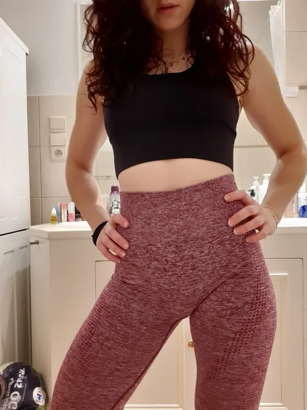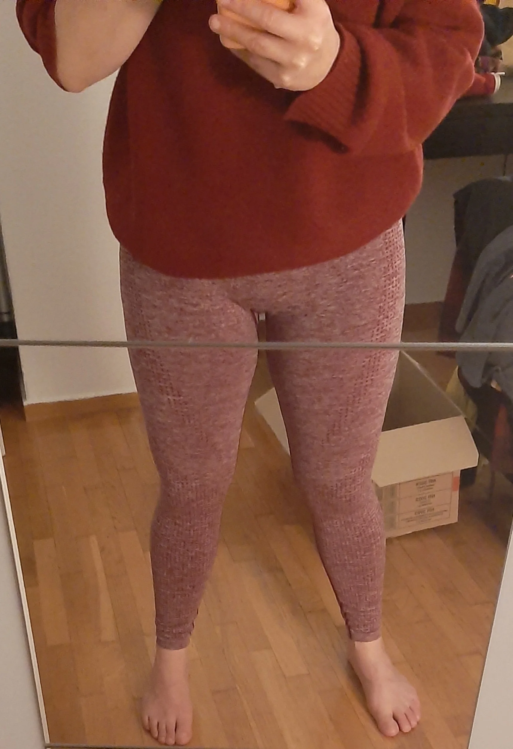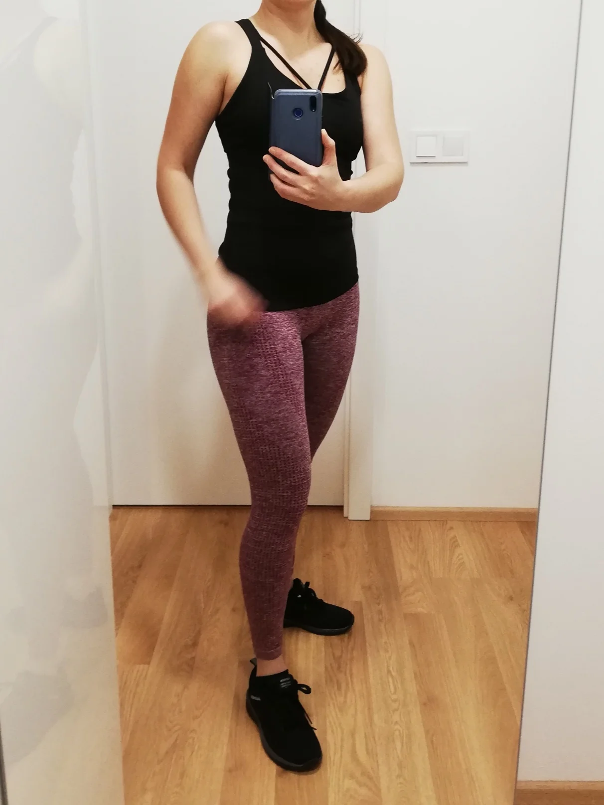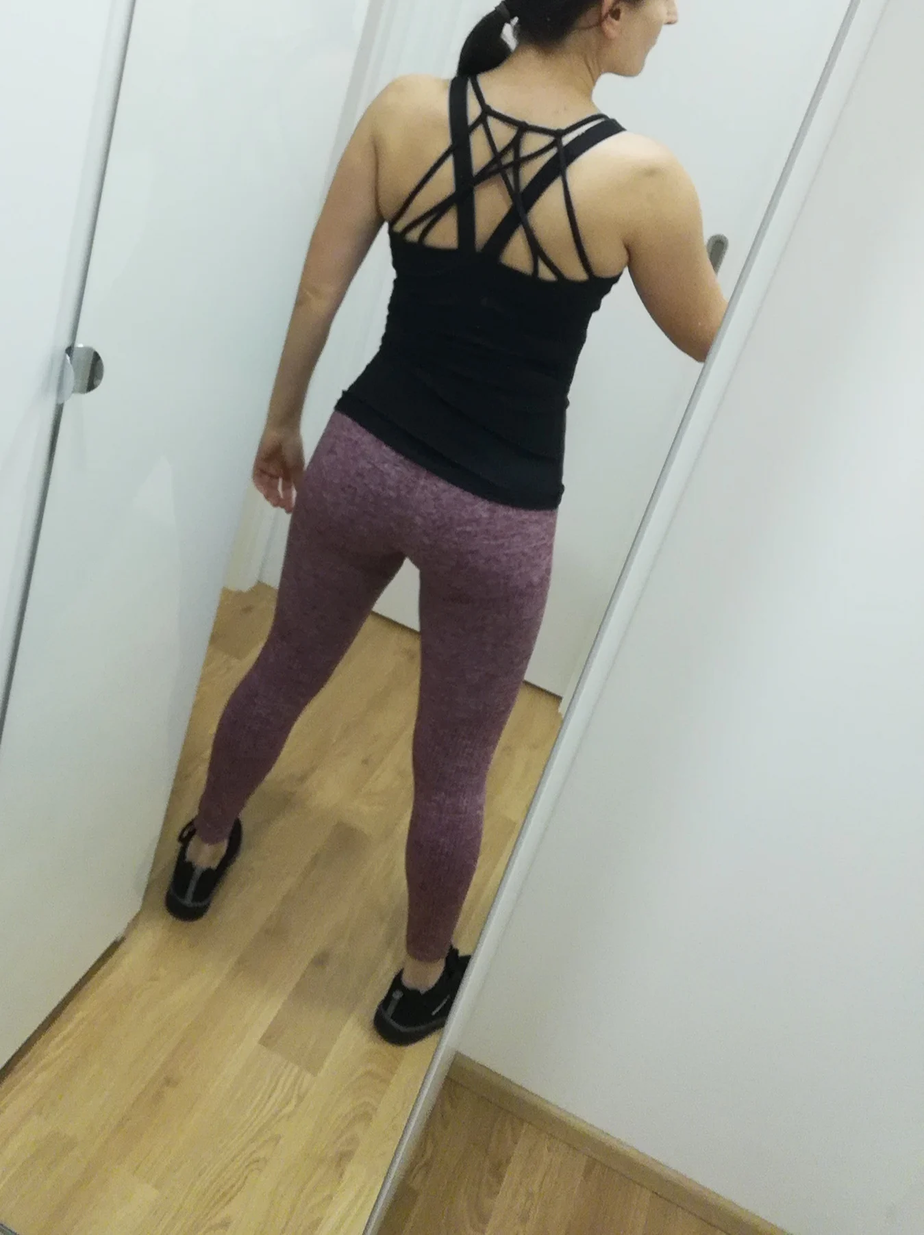 Они действительно хорошо сидят и хорошо смотрятся. Цвет идеально сочетается с бюстгальтером (несмотря на информацию на картинке, я думаю, что это старый). Ничего не скатывается или поднимается-как правило, они остаются на месте всей тренировки. Тем не менее, это не более плотная ткань, моя энергия, бесшовные леггинсы, что немного разочаровывает. Они более деликатные, а также не 100% сжимаемые :( я хочу сказать, что они хорошо работают с бесшовным нижнее белье телесного цвета, так что это не так, как я не могу их использовать. Также очень быстрая доставка (несмотря на общую ситуацию)-я получил их менее чем за 2 недели.