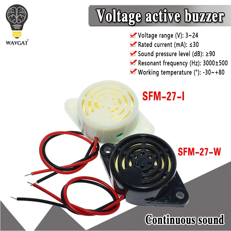 Электронный звуковой сигнал WAVGAT, 95 дБ, постоянный ток 3-24 в 12 В, прерывистый непрерывный звуковой сигнал для Arduino, автофургона, SFM-27