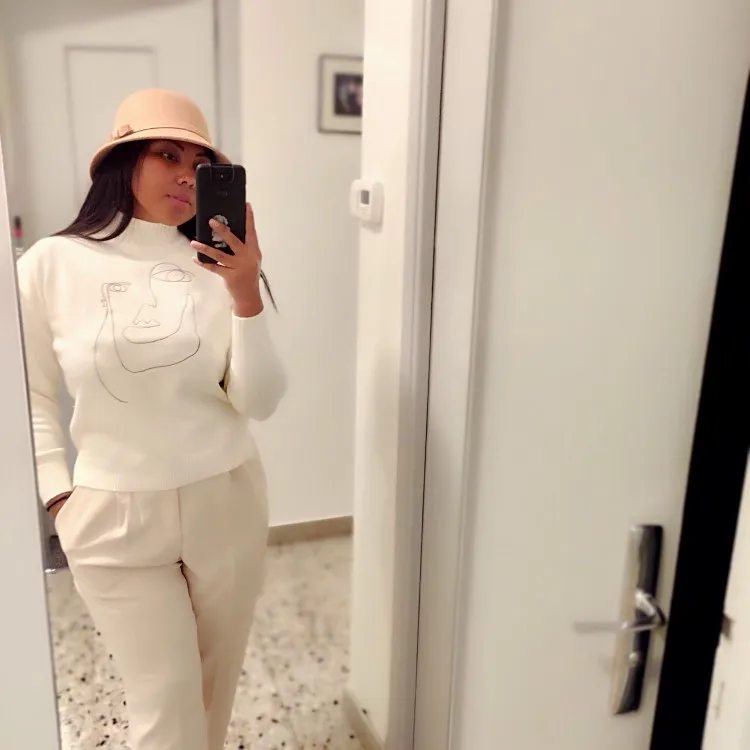 Женский трикотажный пуловер, с геометрическим рисунком лица, с высоким воротом, с длинным рукавом