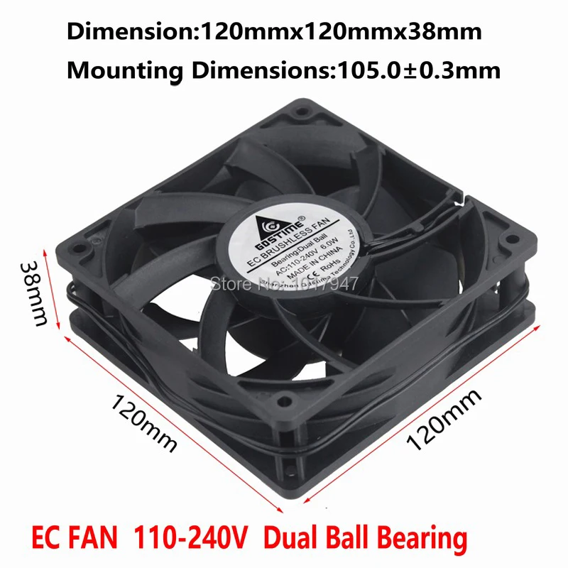 120 мм EC Вентилятор охлаждения AC 110 в 120 в 220 в 240 В двойной шариковый подшипник 120x120x38мм