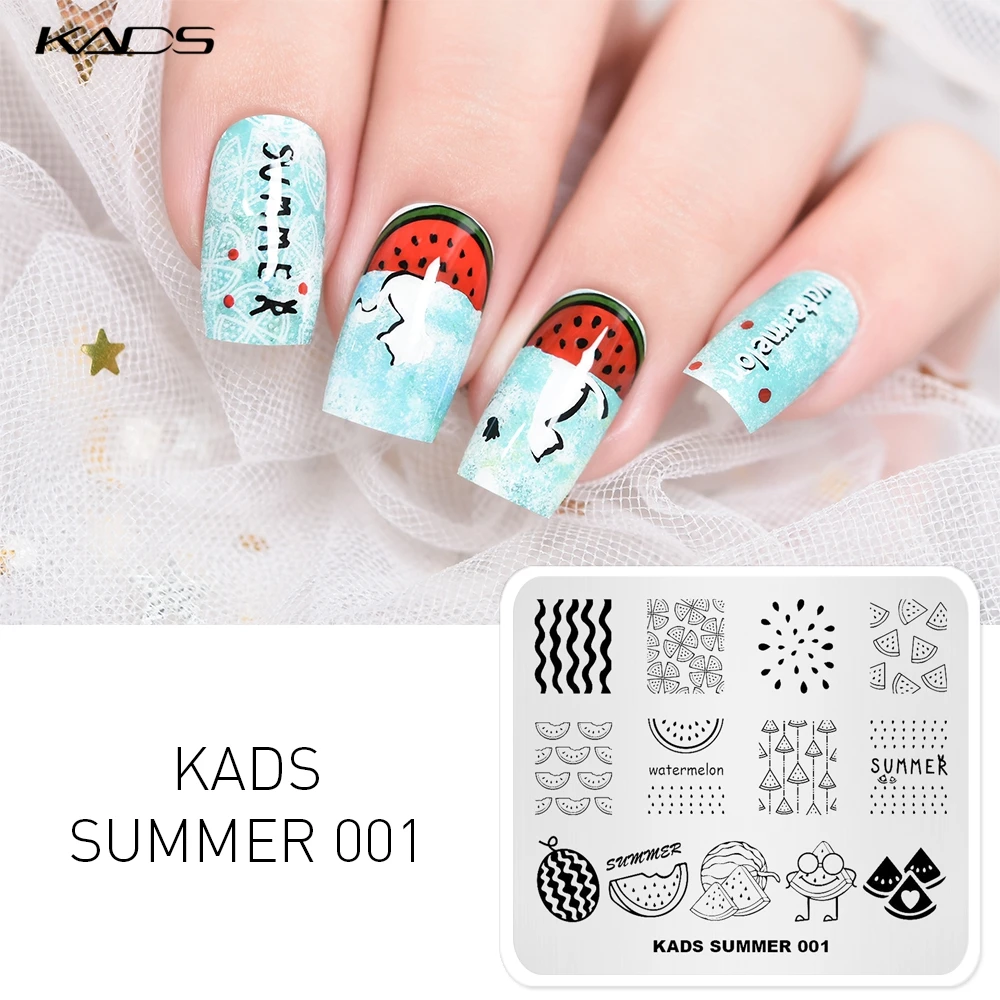 KADS Лето 001 арбузный дизайн шаблоны для дизайна ногтей пластина с изображениями для нейл-арта из нержавеющей стали DIY шаблон для печати ногтей
