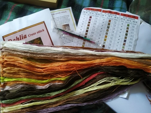 Содержимое упаковки: вышитая нить, вышитая ткань, игла, узор