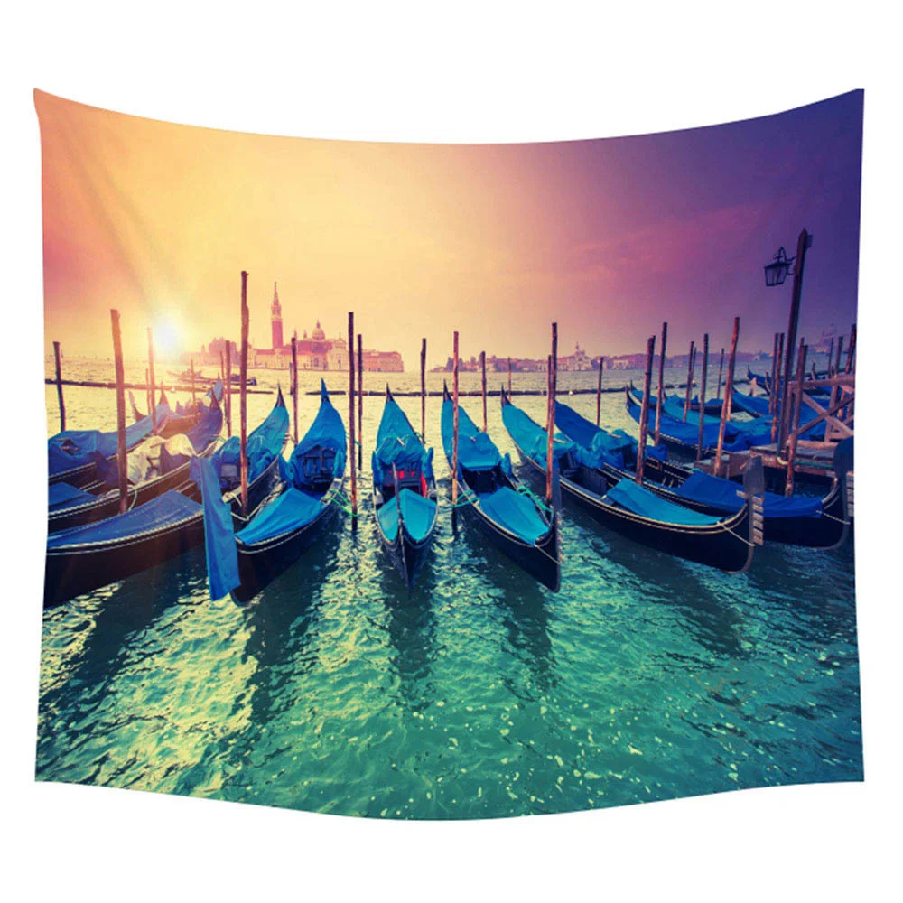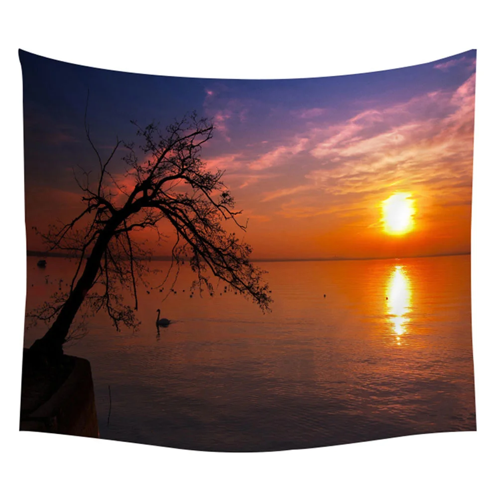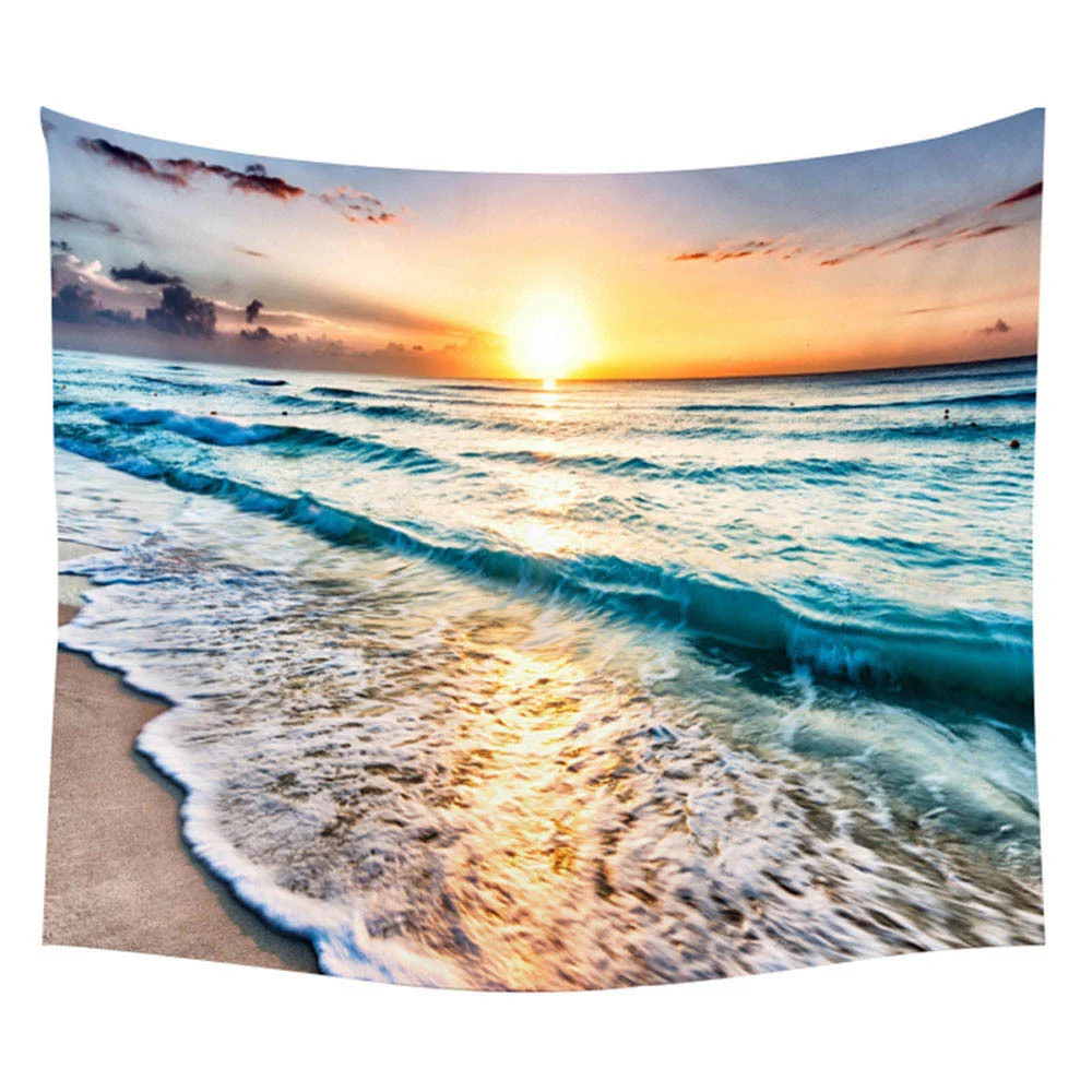 Подвесное настенное одеяло ручной работы из полиэстера с изображением солнца, голубого облака, пляжа, воды, пейзажа, пляжа