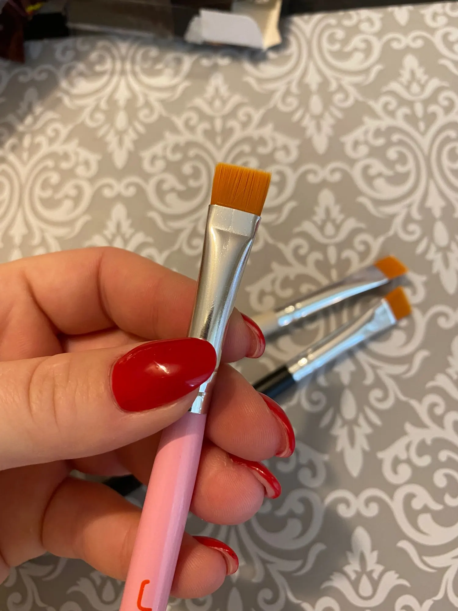 Самая крутая кисть!!! Заказываю уже второй раз для подчистки нижней линии во время выкладки краски, хны. Для бромистая нужная кисть. При длительном использовании на пол года хватает