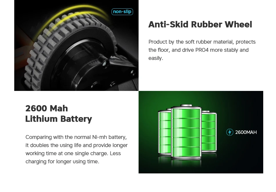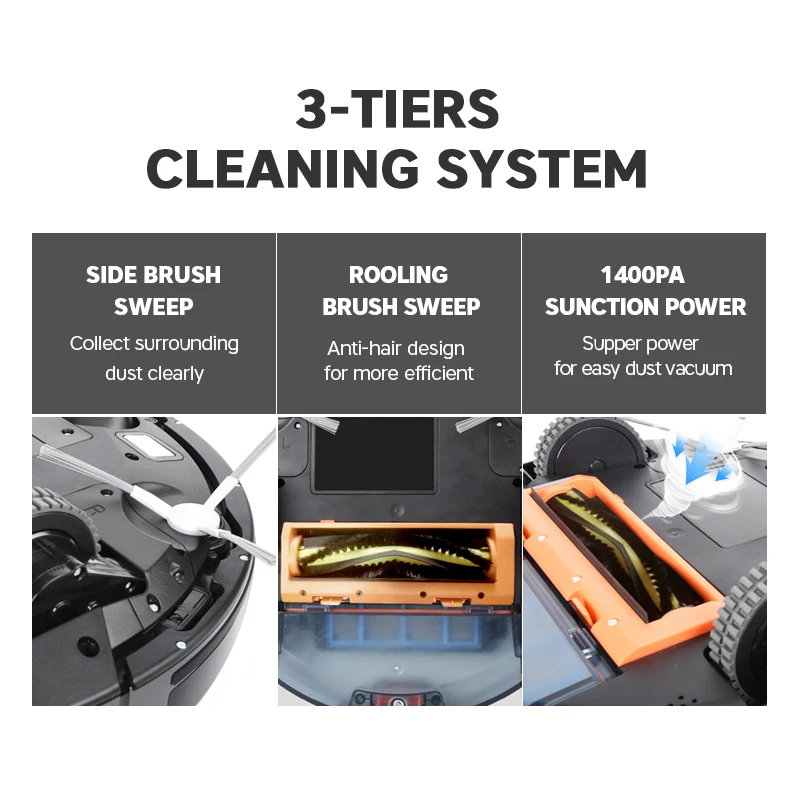 Cleaning SystemCentral Brush + Double Brush+Up to 1400PA Vacuum Suction