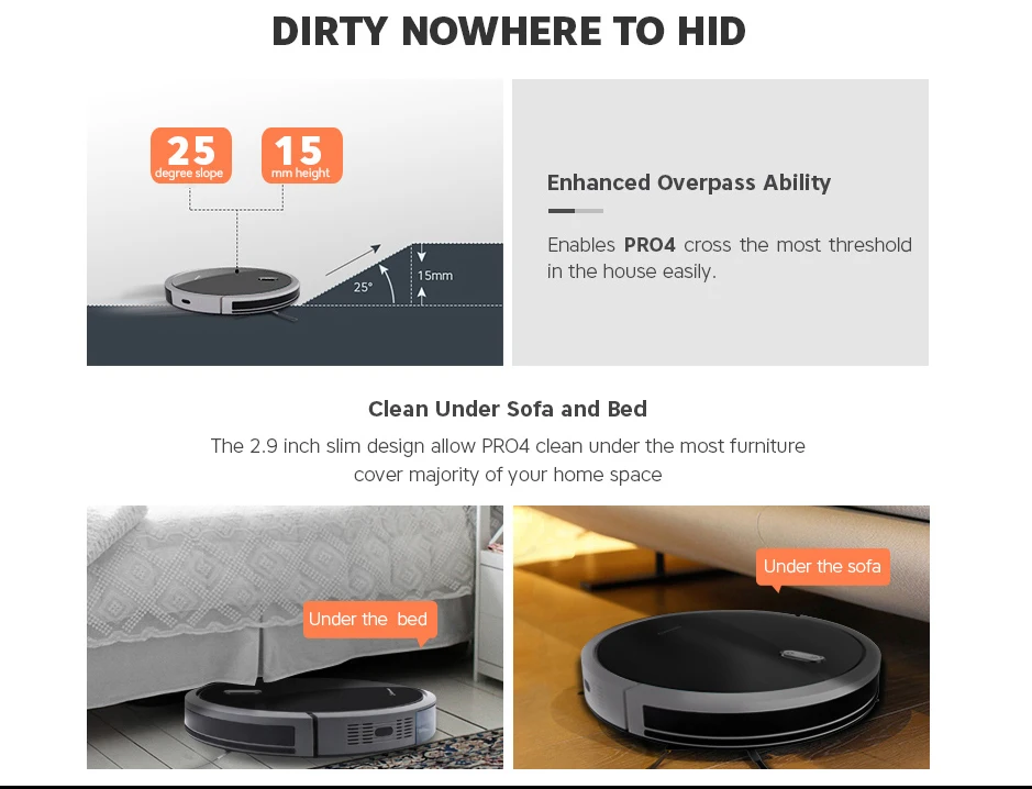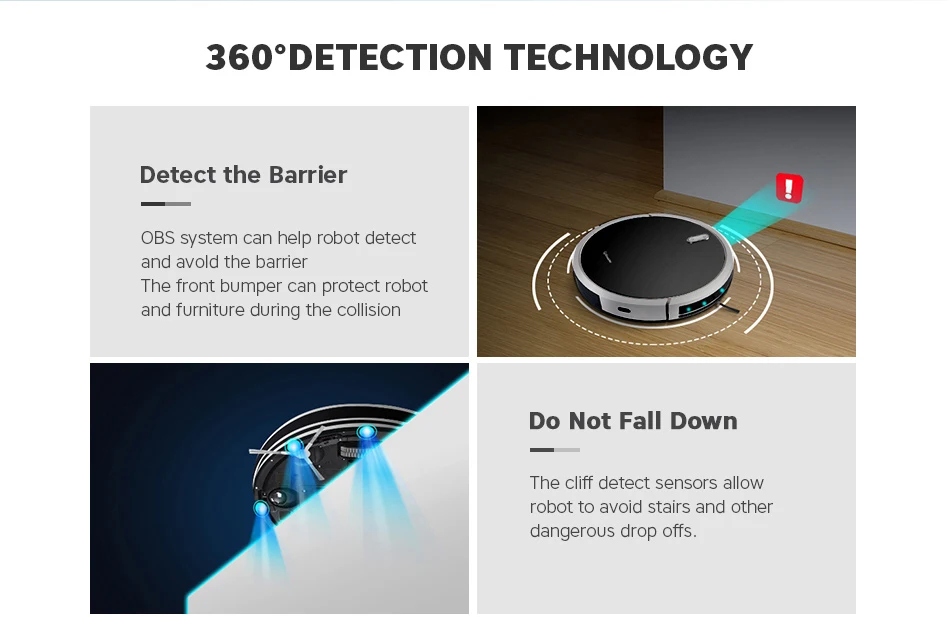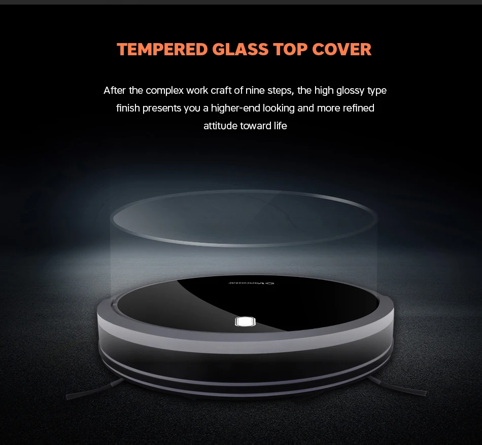 -Закаленное стекло на верхней части с глянцевой отделкой для высокого класса-Высокая производительность бесщеточный двигатель для меньшего энергопотребления и более длительного срока службы.-Вытяжной бак типа Dust для легкого использования и очистки-Улучшенная способность скалолазания до 15 мм или 25 градусов, лучше, чем у других роботов-Система датчика OBS использует технологию инфракрасного зондирования расстояния, чтобы робот мог обнаруживать/избегать барьера и не падать (Мини. Высота обнаружена 10 см)-Передний бампер из мягкого ТПУ защищает робота и мебель при столкновении-3 + 2 режима очистки: автоматический, Edge, Spot + Mini room mode & Max-Ежедневное расписание и функция автоматической зарядки позволяет роботу чистить комнату каждый день, когда вы чувствуете усталость или даже вы не дома.-Автоматический светильник buttonwith с двухцветным индикатором на Роботе для легкой работы и четкого состояния-Пульт дистанционного управления с ЖК-дисплеем-Задерживает пыль 3 стадии фильтр systemincluding HEPA фильтр, фильтр грубой очистки, фильтр из хлопка для того, чтобы избежать вторичного загрязнения-2600 мА · ч-Класс Li-Batteryworking дольше для большой комнаты