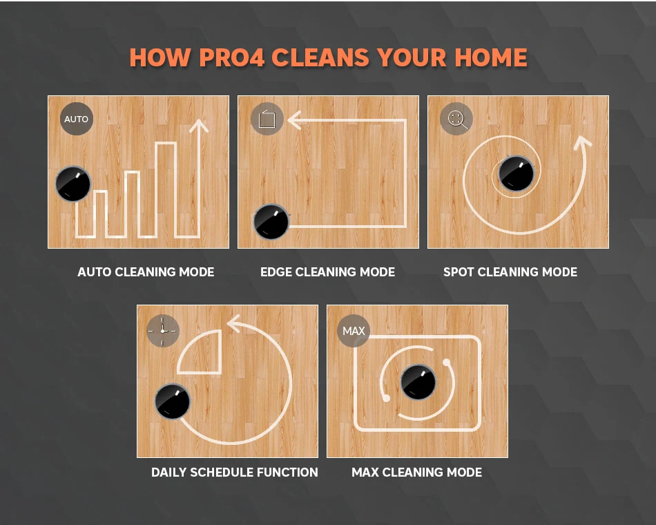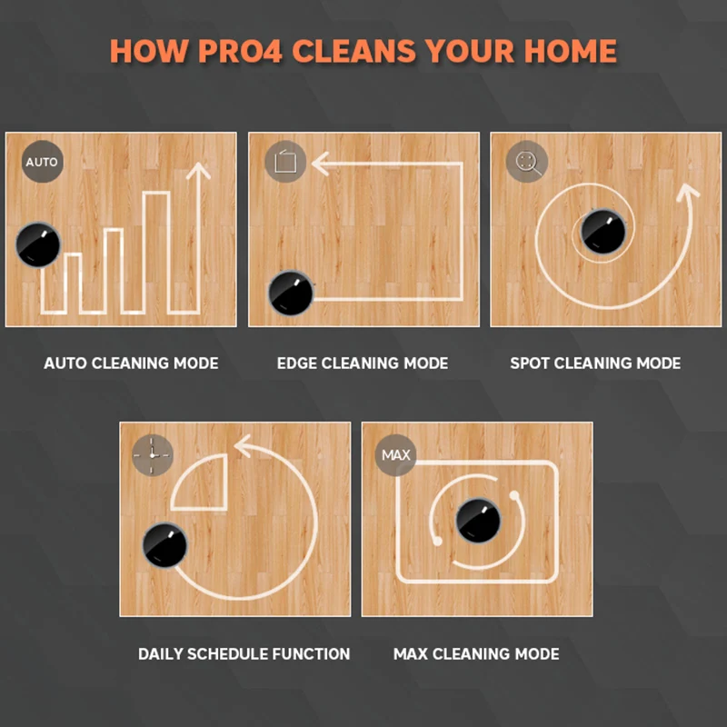 Cleaning ModesAuto, Edge, Spot, Max, Mini Room, Schedule