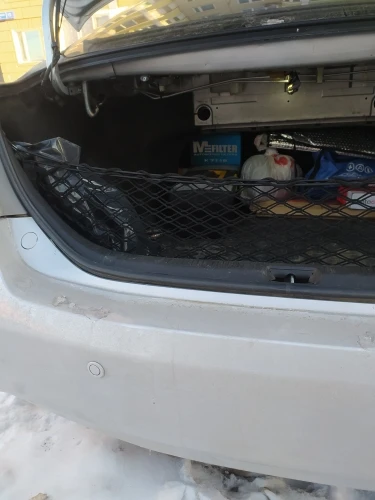 В багажник стала идеально, сетка прочная, заказывал знакомому, он поставил на старые крепления (крючки)