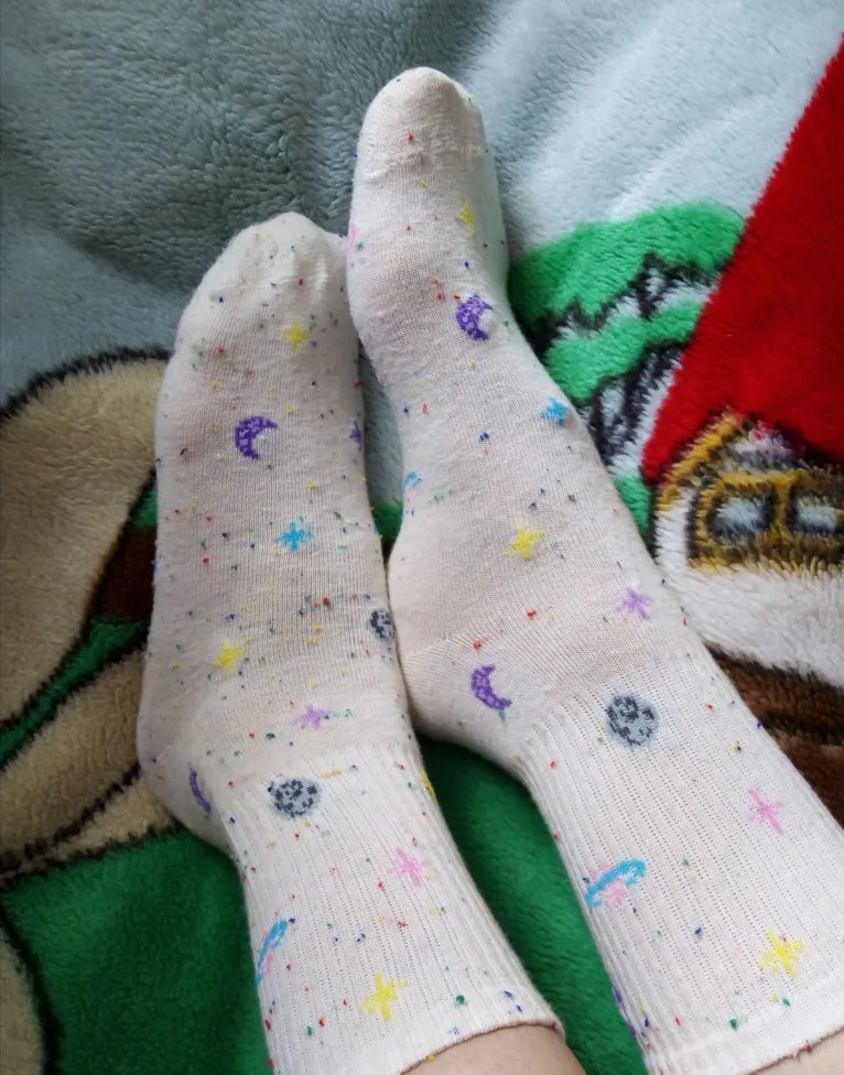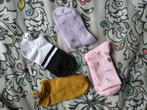 Очень красивые носки, но порвались на кончике буквально через несколько носок( обидно, может это я их задела. Наверное, куплю ещё. Дошли очень быстро (после завала в мае посылки летают со скоростью света)