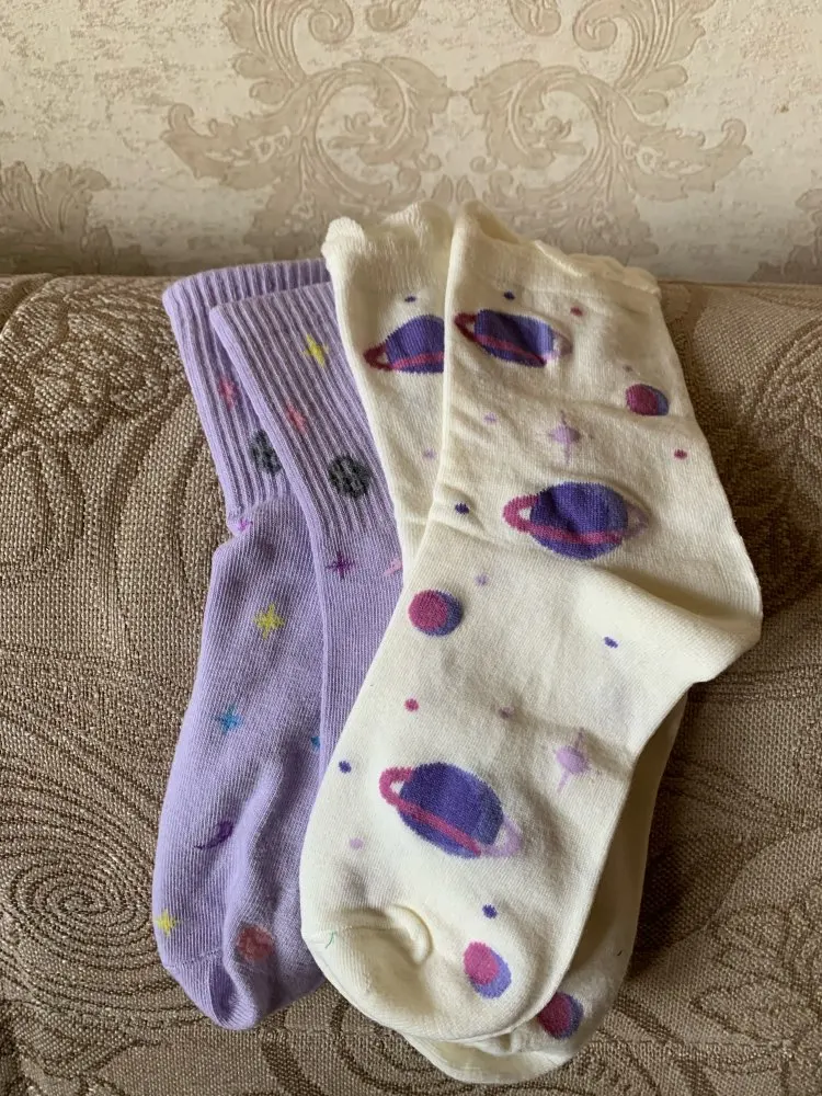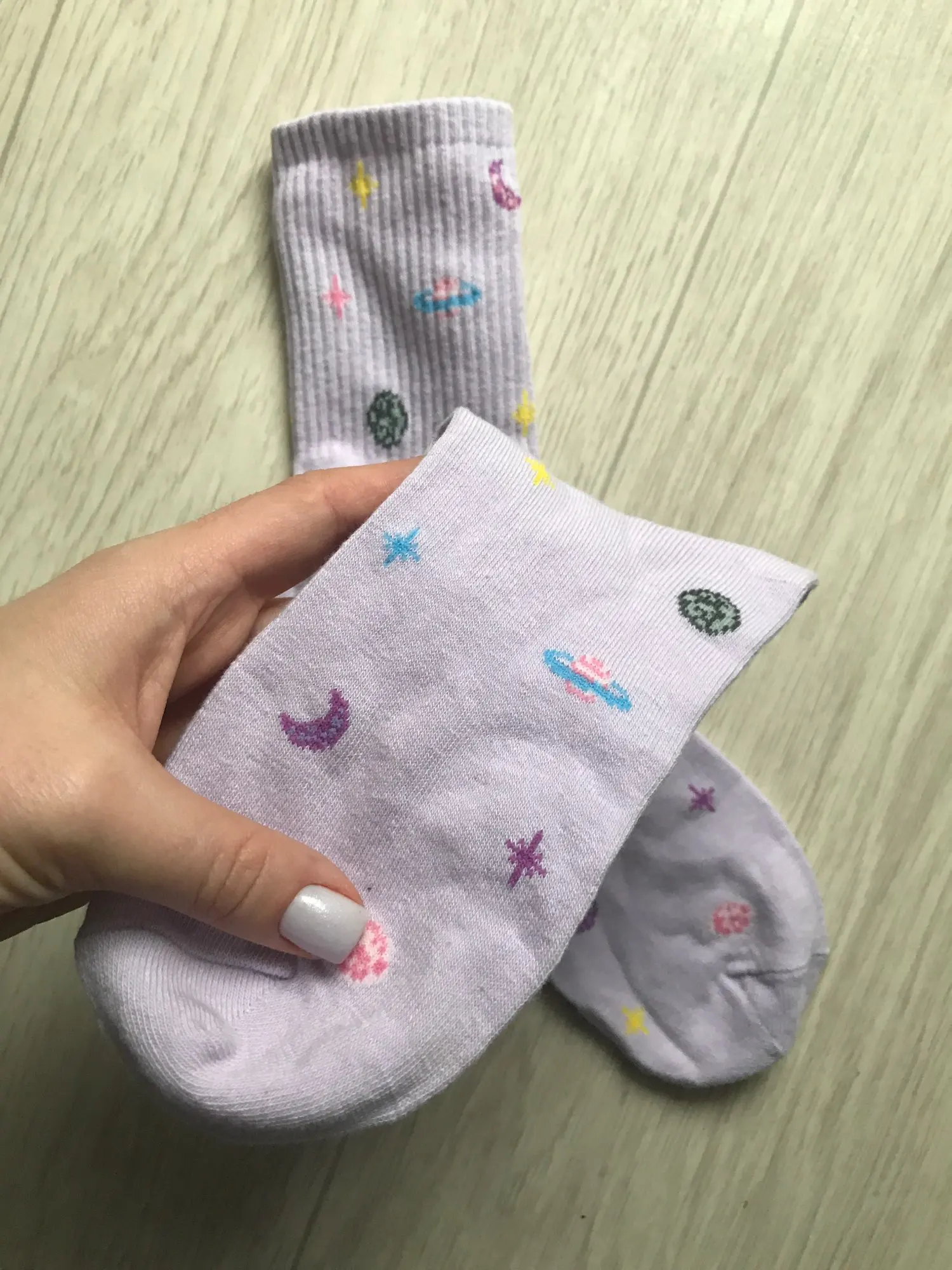 девочки!!! это нежнятинка ахахаха, милый сиреневый космос со звездочками ну каааайф и мягкие удобные, очень приятные к ноге, я кайфую, закажу ещё!!!!